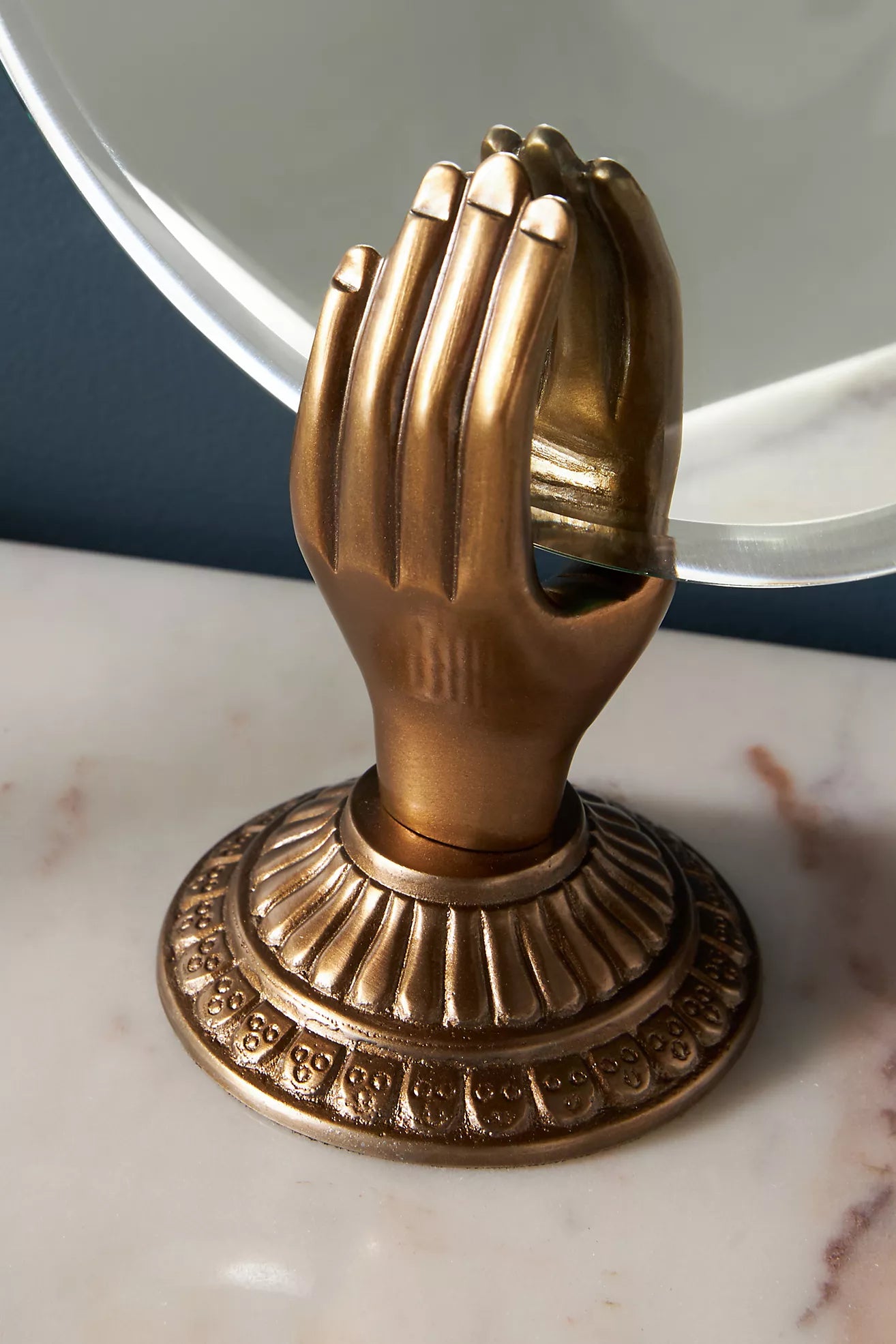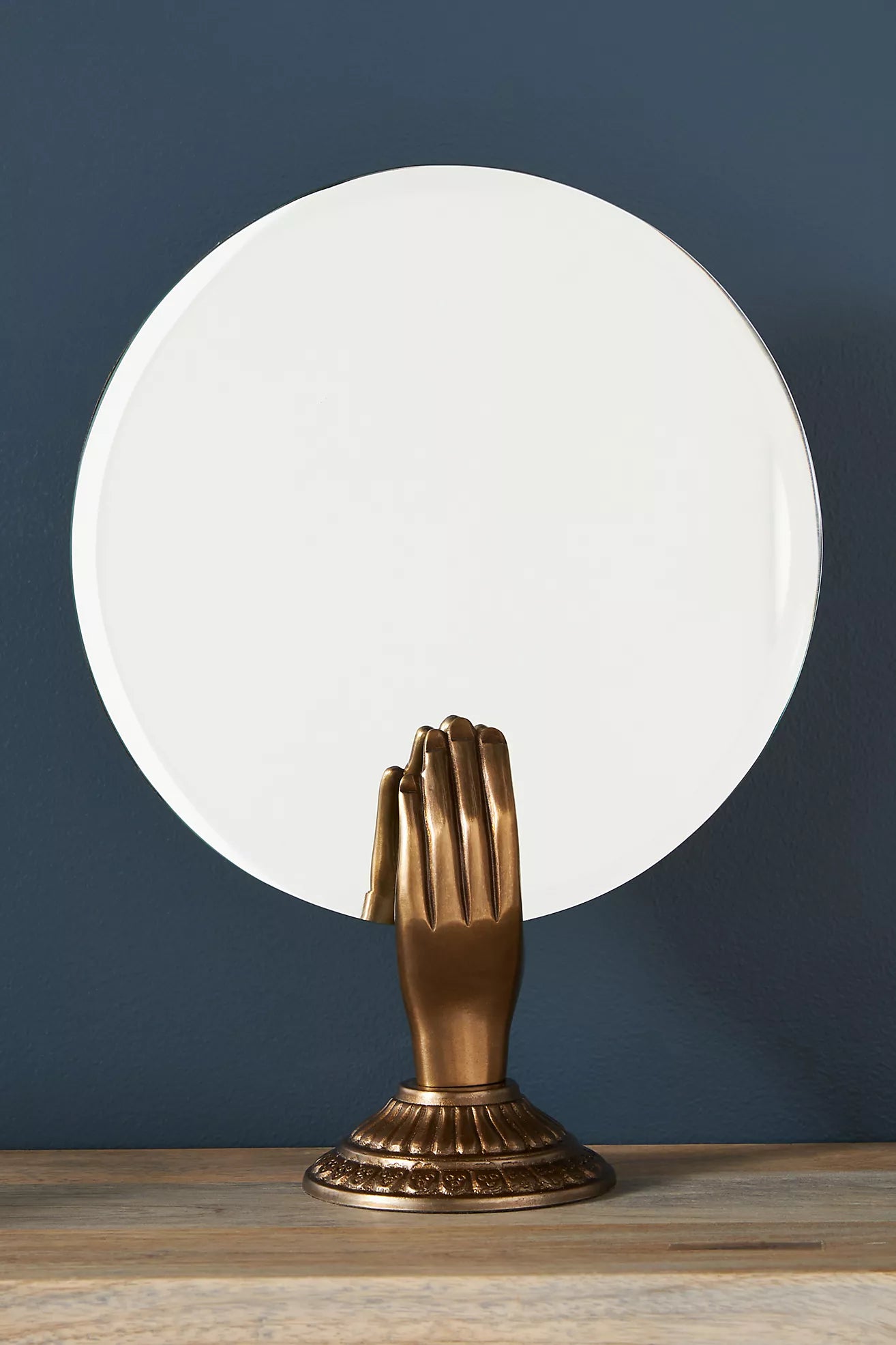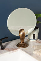 With a glimmering bronze finish, this mirror adds a sophisticated touch to a dresser, desk, or makeup vanity.