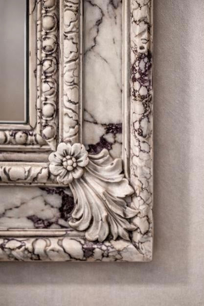 - Ornate, classic frame detailing with a contemporary marble effect