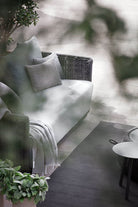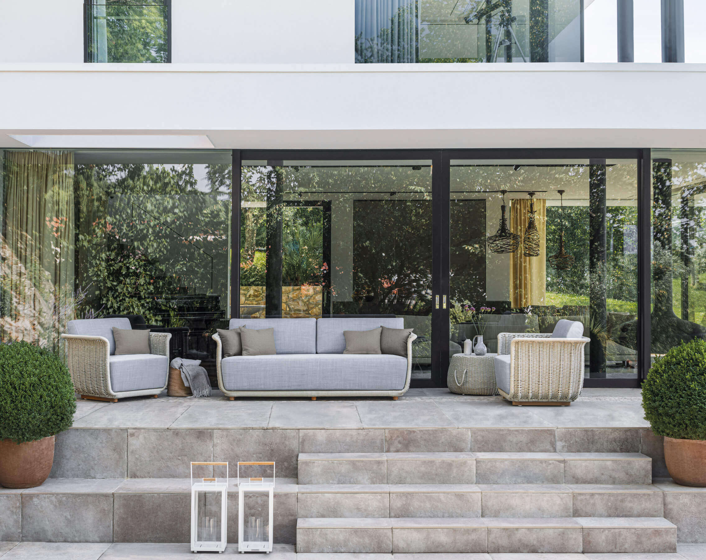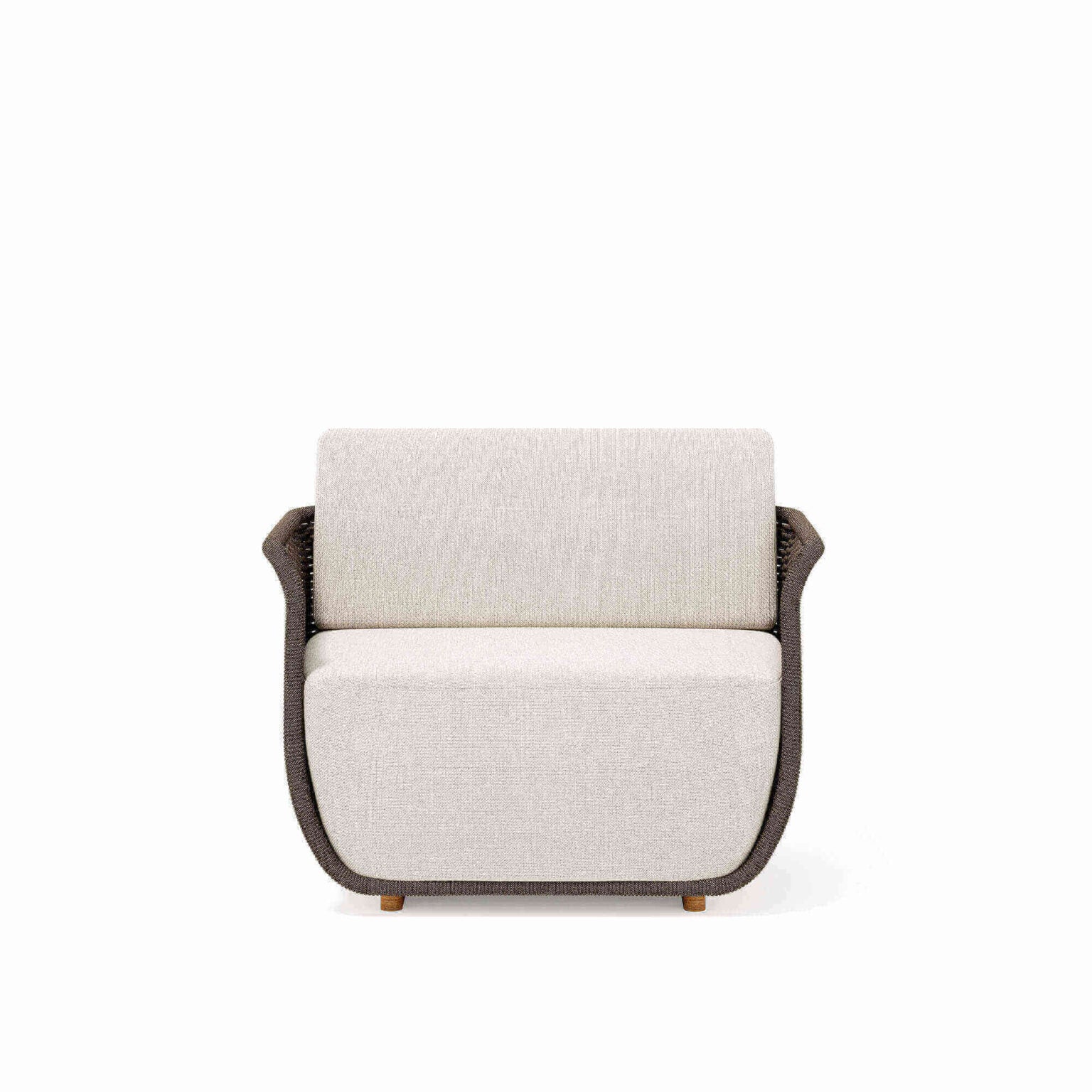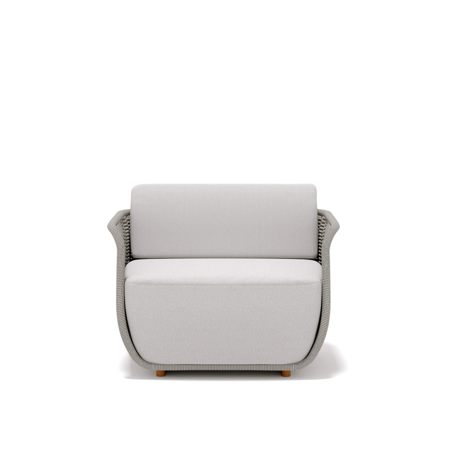 The armchair and sofa make up the series and are characterised by a light weave, which lets the light shine through, made of melange acrylic yarn.