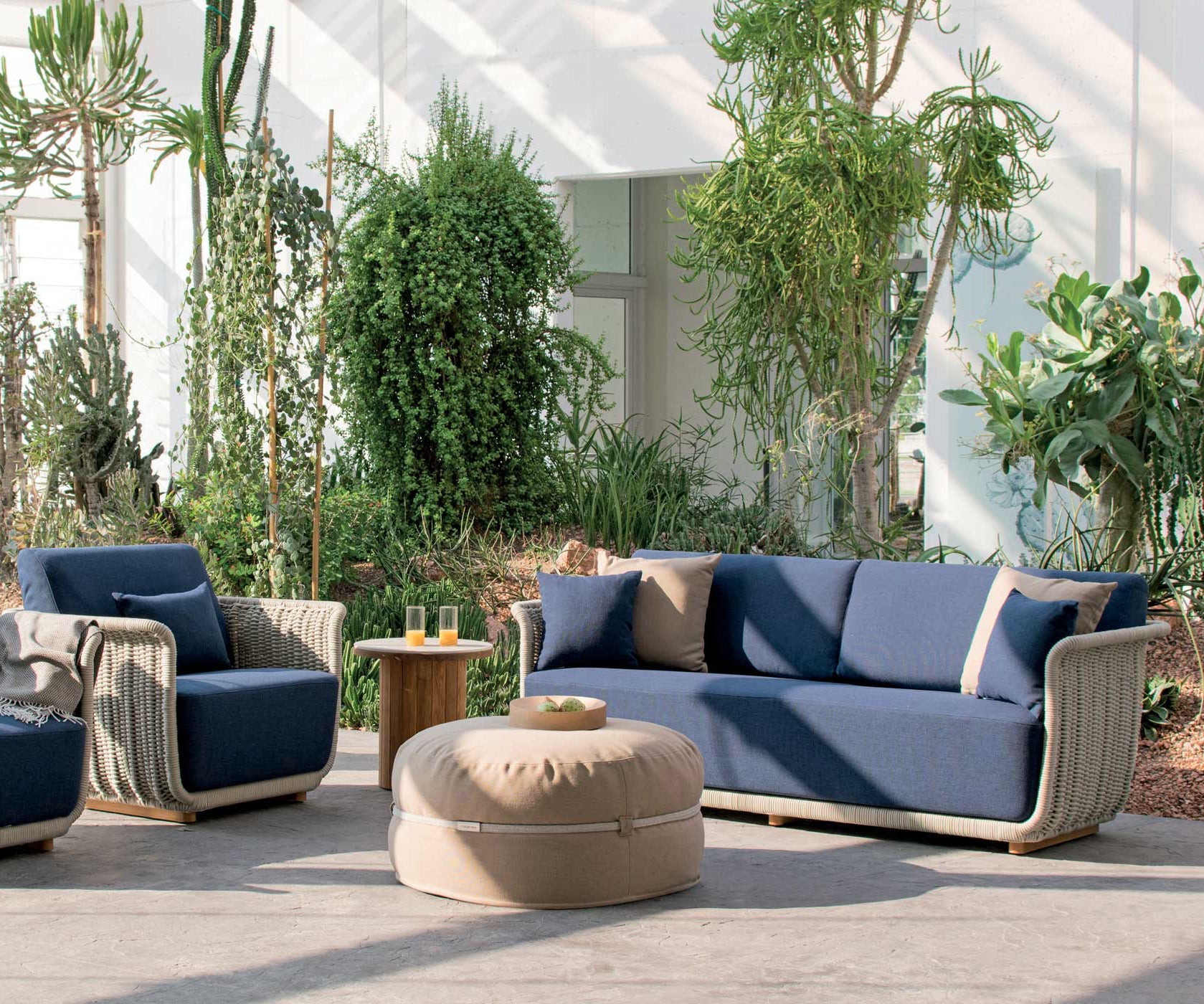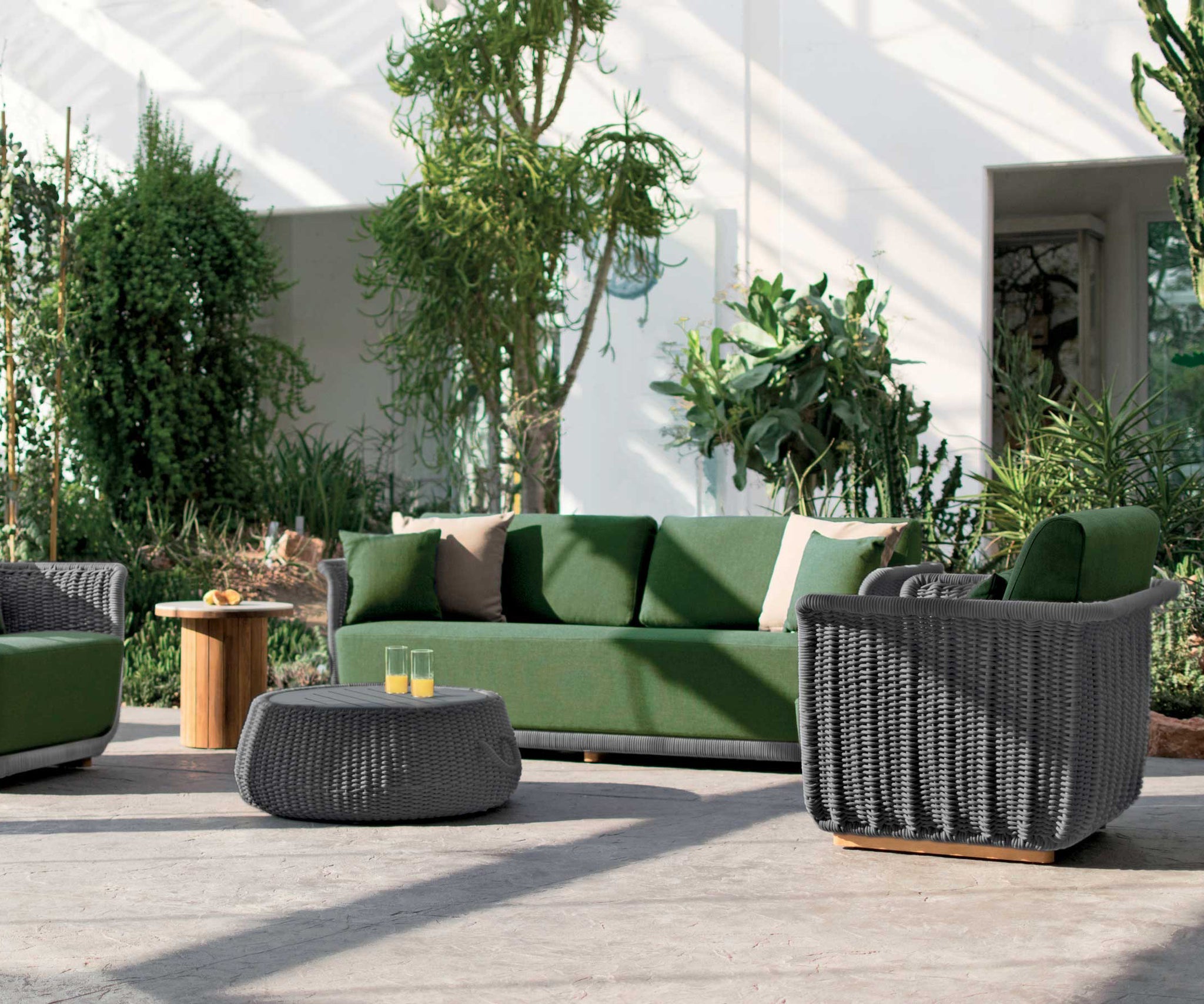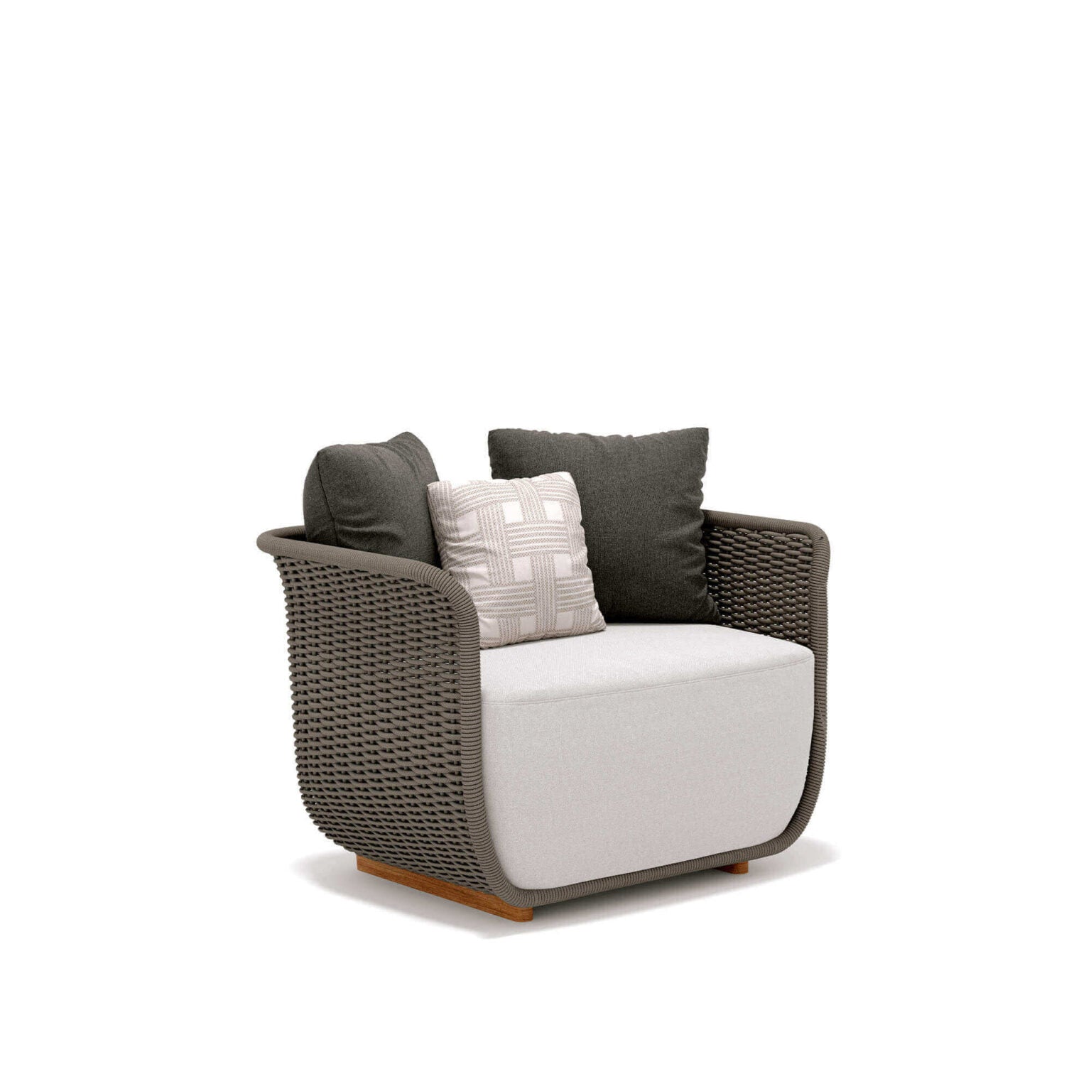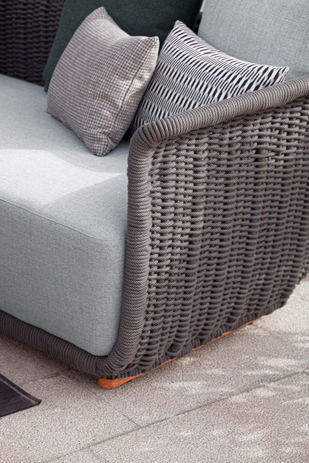 Subtle chromatic assonances drawn by the hand-woven rope, a unifying element of the entire Bellagio collection.