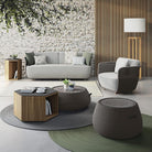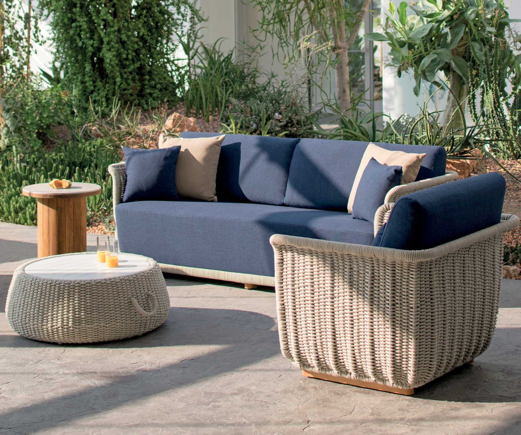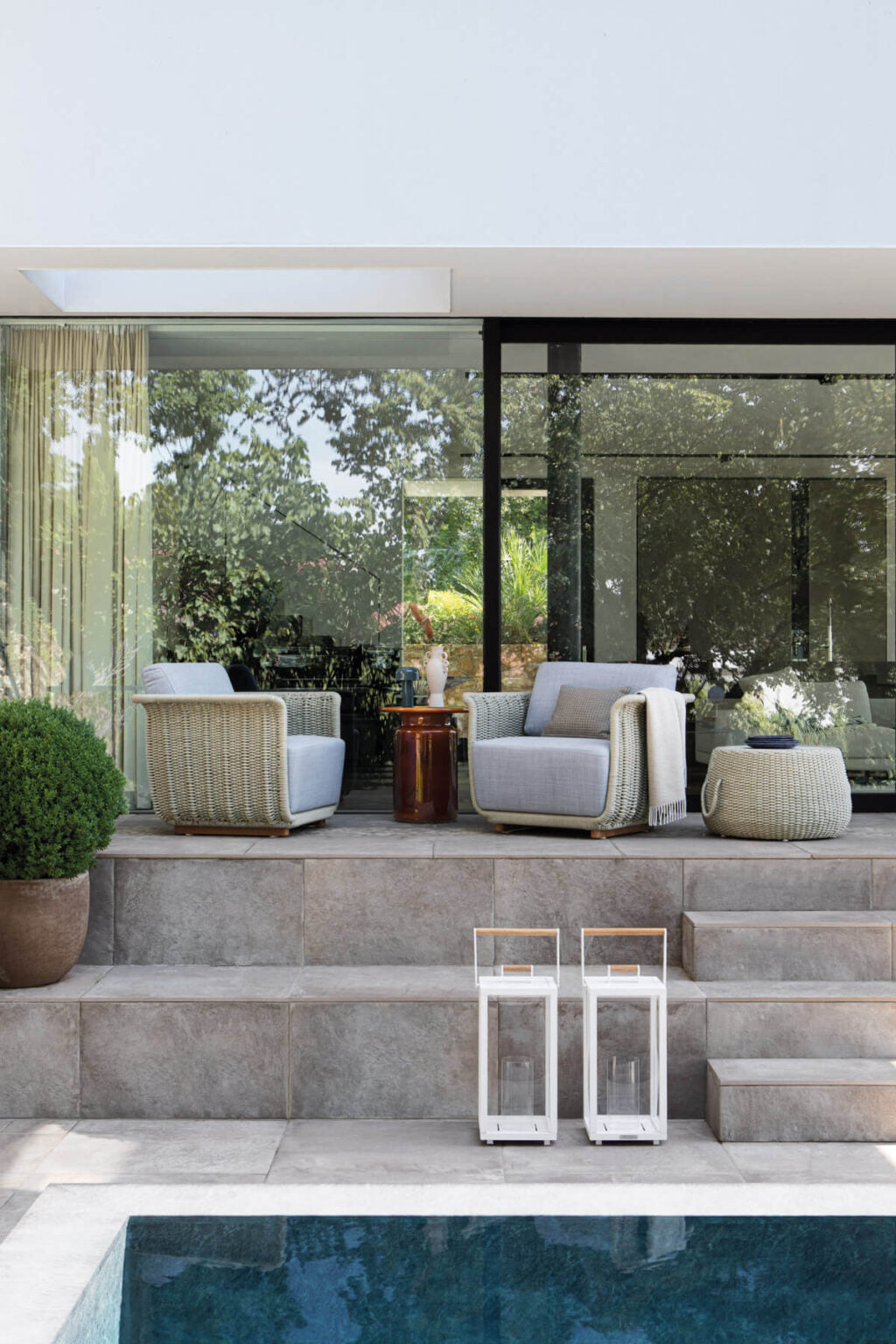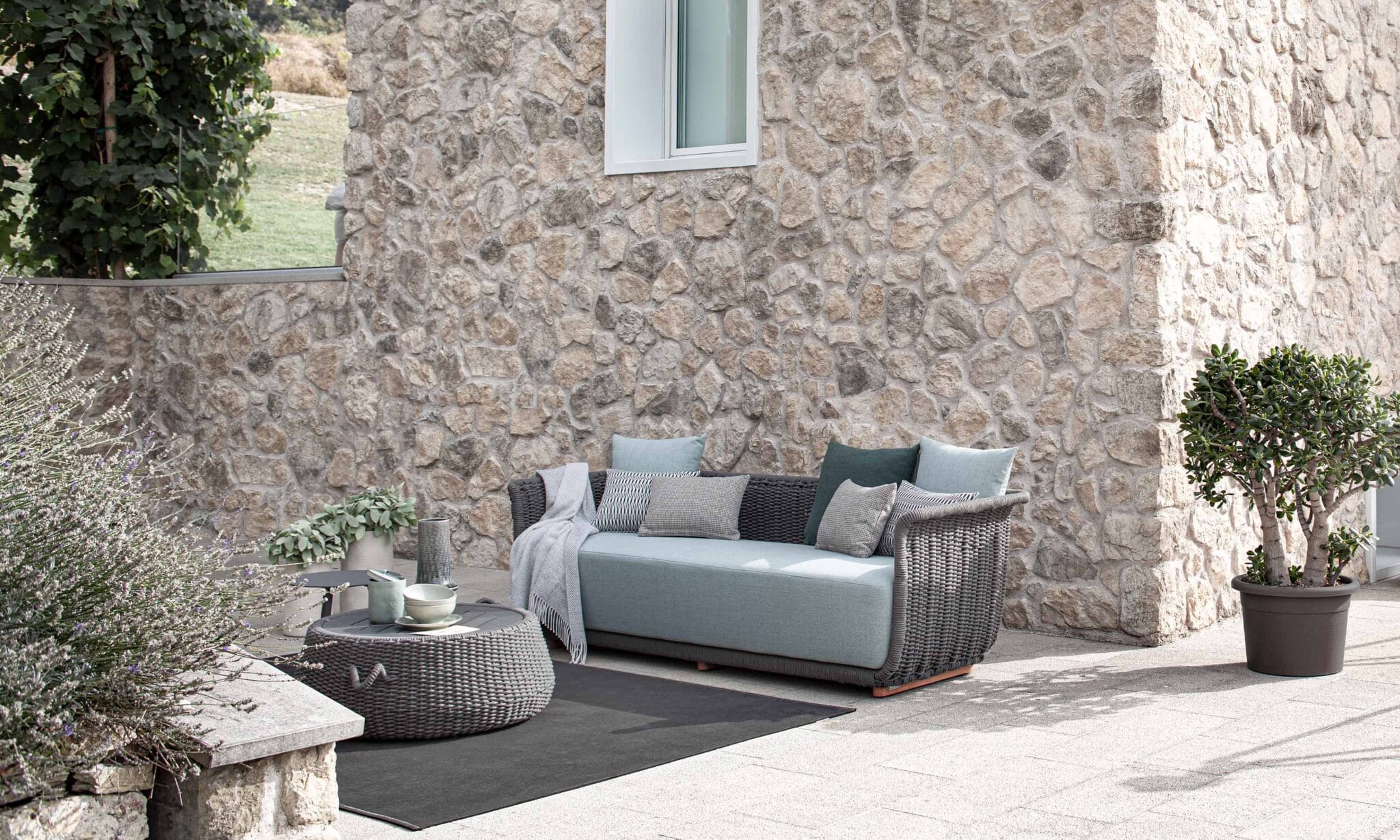Subtle chromatic assonances drawn by the hand-woven rope, a unifying element of the entire Bellagio collection.