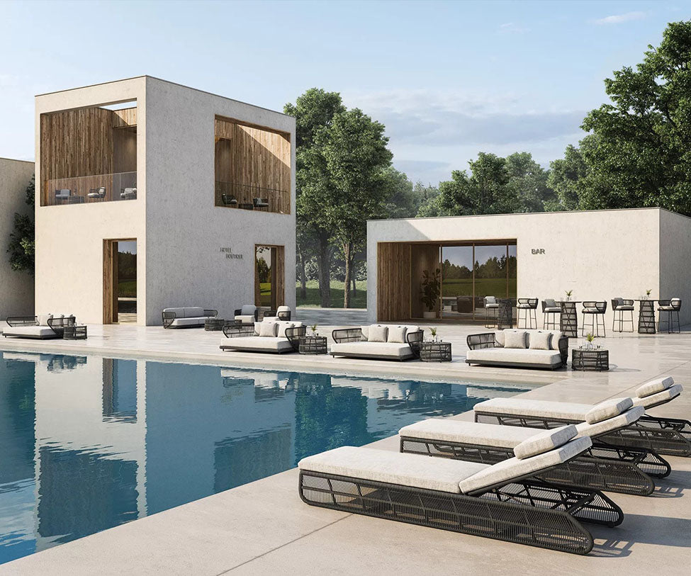 The Cuff Collection, inspired by the curve of the wrist bangle of indigenous cultures, brings an elevated aesthetic to the outdoors. The frame is powder-coated aluminum with a custom weave that is semi-transparent to let the elements of light and air flow through. The seat platform is slightly elevated from the ground to give the pieces a lightweight feel, as if taking flight. The Cuff Collection is a gem that is treasured and cherished, like the moments of our lives.