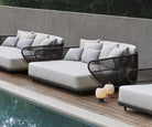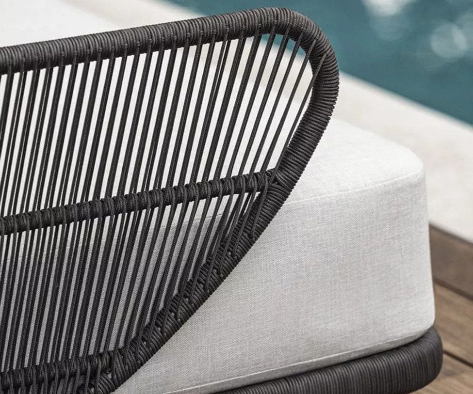 The Cuff Collection, inspired by the curve of the wrist bangle of indigenous cultures, brings an elevated aesthetic to the outdoors. The frame is powder-coated aluminum with a custom weave that is semi-transparent to let the elements of light and air flow through. The seat platform is slightly elevated from the ground to give the pieces a lightweight feel, as if taking flight. The Cuff Collection is a gem that is treasured and cherished, like the moments of our lives.