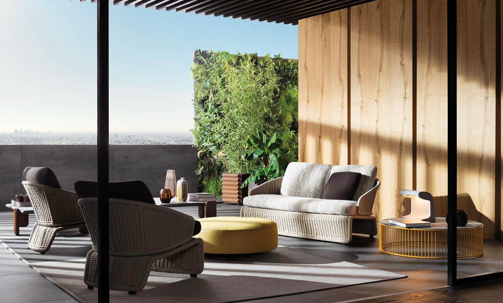 The Halley “Outdoor” family includes an armchair, footstool, sofa and daybed. Thanks to their streamlined proportions, they bring stylish, elegant decor to any setting, even urban and hospitality spaces.