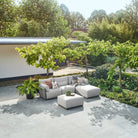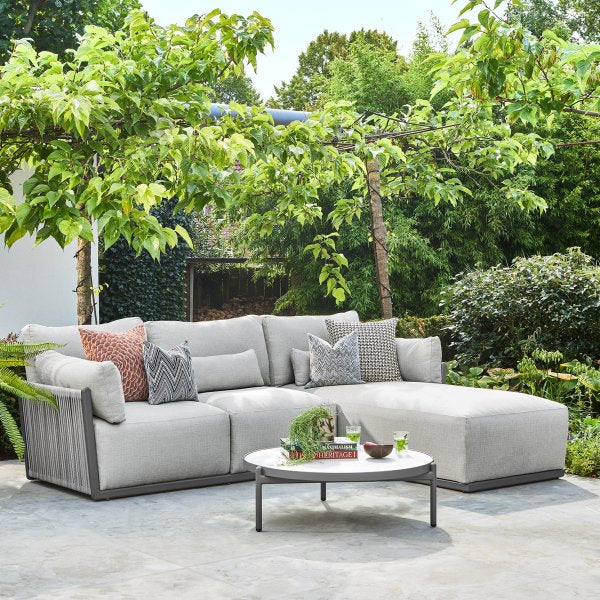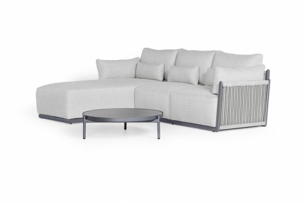 creates the perfect place for you to spend long days in the sun. Crafted with a strong aluminum frame, it is extremely durable and can withstand any weather. The rope weave frame matched with extra-large cushions creates an elegant look without compromising on comfort.