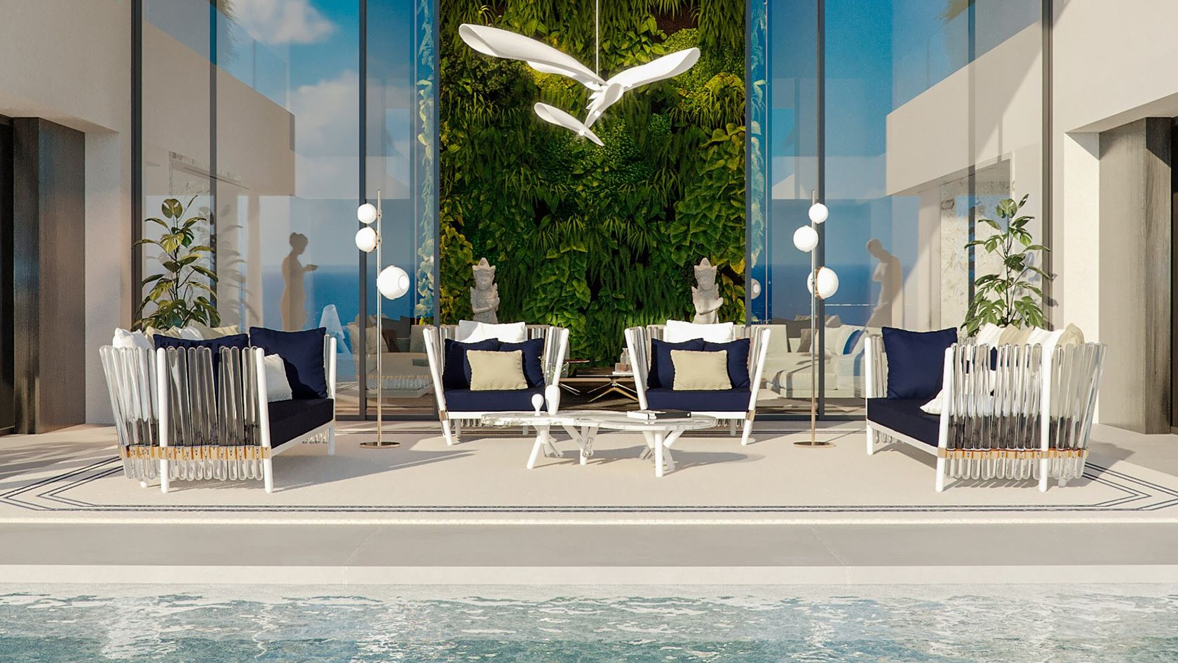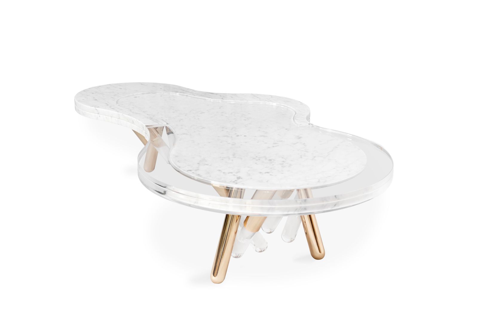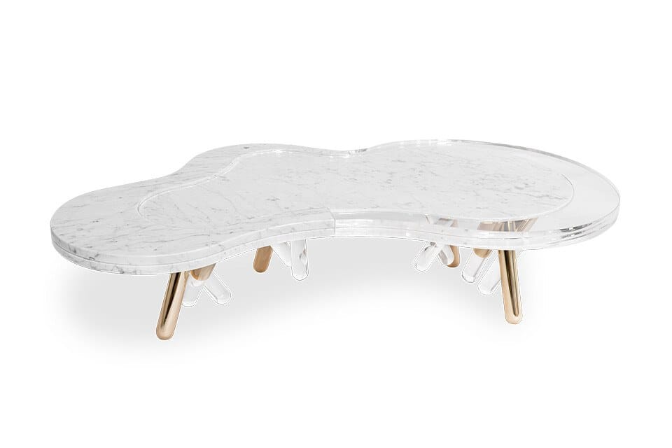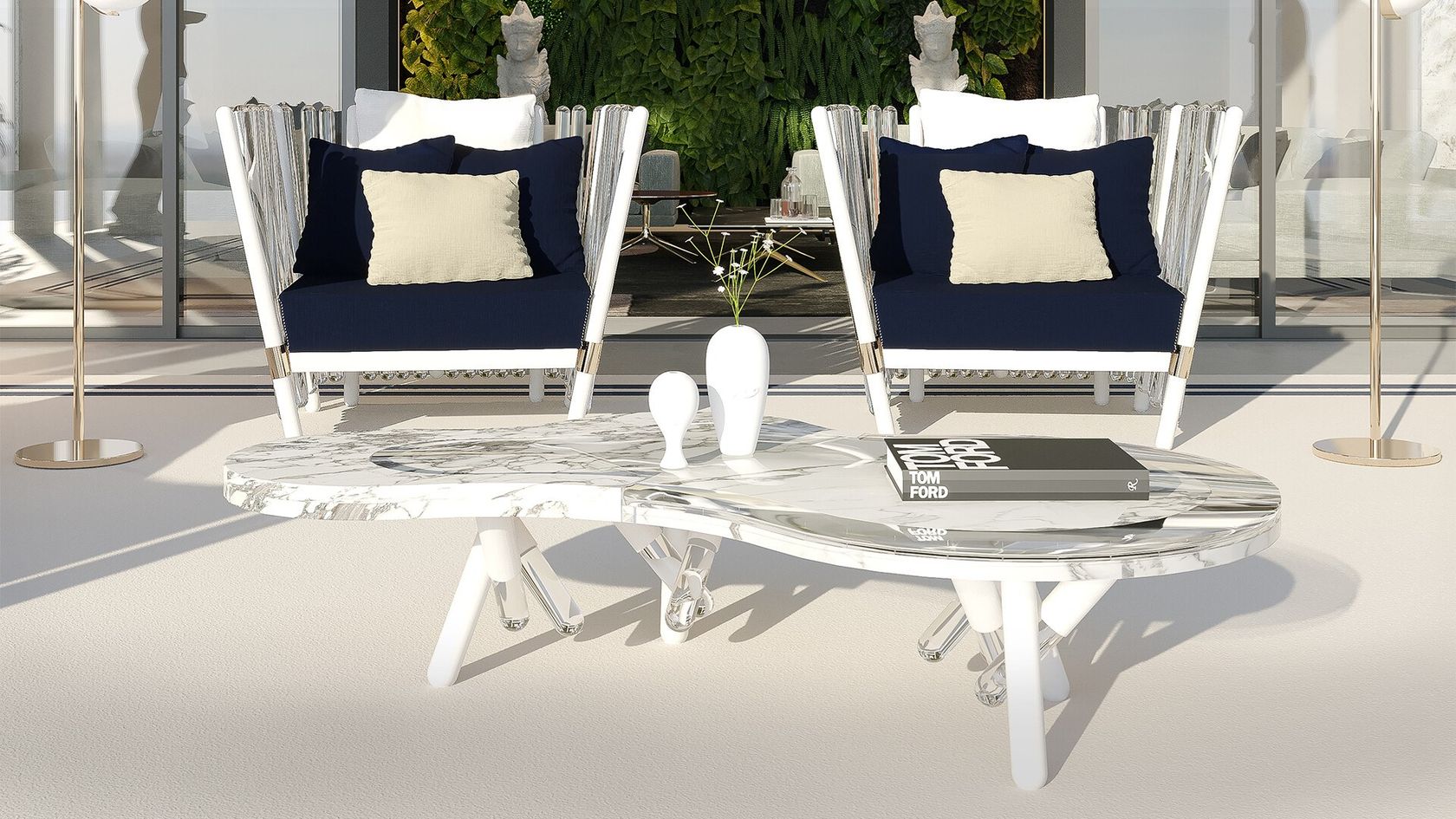 Overlapping the lightness of metals and the luxury that its acrylic and marble composition bring, the Houdi center table is the perfect choice for those who can’t choose between emptiness and density when designing their outdoor spaces.