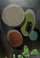 Available in four sizes, they are characterised by the combination of lava material and glass in four different shades which, like an expanding stain, colours the surface of the top three-dimensionally, leaving the tangible materiality of the stone on the edges.