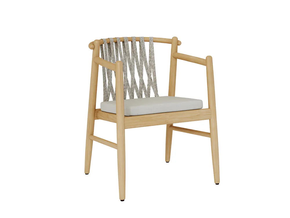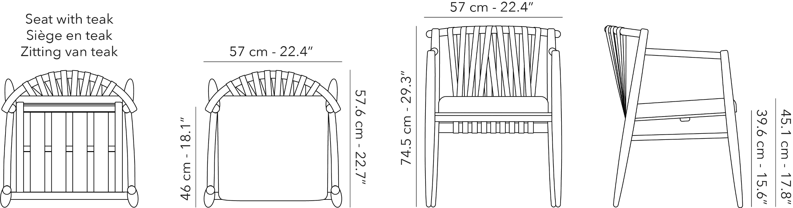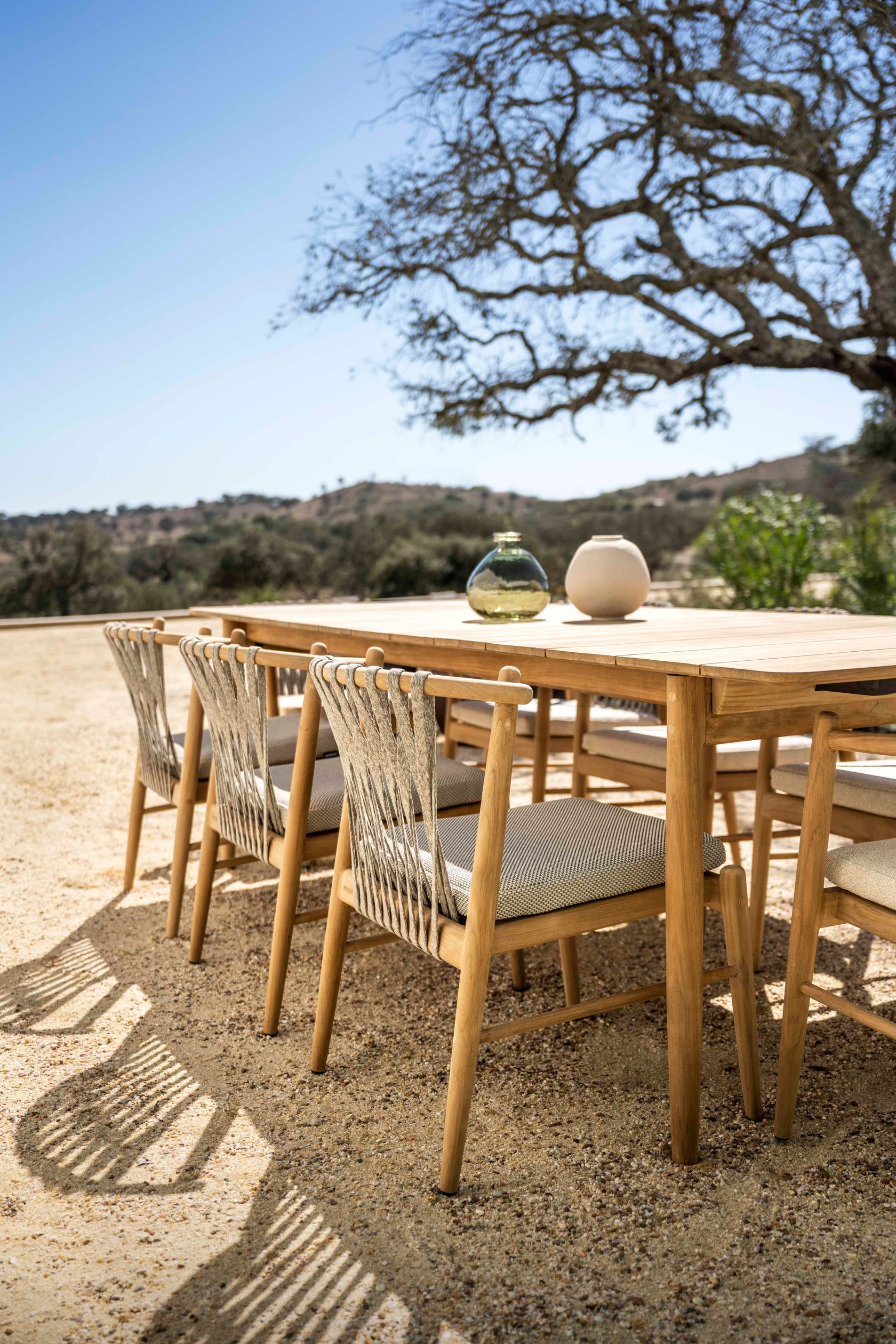 Noa is a garden chair made of natural teak and Essegomma strap. Cushions are filled with all weather foam. An advanced, high performance foam, developed for outdoor applications.