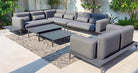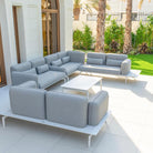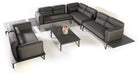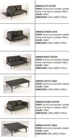 note: The set includes two without arm two seater sofa, one with both arms sofa, a corner coffee table and Center coffee table