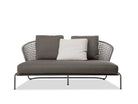 The Aston “Cord” Outdoor collection comes with a pewter colour polyester-painted metal frame specially treated for exterior use, as are the padded cushions, which are covered in waterproof fabric. The seat back is in a special braided 7 mm diameter polypropylene cord, available in the following colour variations: Light Gray, Dark Brown, Sand, Sunflower, Khaki Green and Rust, a perfect match for the fabrics in the Art Lifescape 02 textile collection and the shade of Alison “dark brown” outdoor. The painted metal frame is finished with a special polyester paint for exterior use in Pewter colour and the seat back is in a special braided polypropylene cord, available in two colour variations: light grey and dark brown. The seats feature an exclusive Minotti Studio laser-cut geometric design. Inner padding of the cushions is in highly durable expanded polyurethane covered in water repellent fibre.