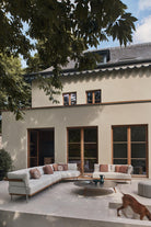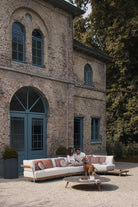 Flex unites a world of contrasts, merging the flexibility and strength of its design. This collection showcases a sleek, elegant aluminum frame paired with the warmth of handcrafted wood, achieving a harmonious balance between old and new. Designed in collaboration with Metrica, Flex combines traditional aesthetics with modern innovation, offering an ambiance of nostalgia and contemporary lightness. It offers two versions: teak natural and teak nero, complemented by soft cushions in warm colors. Flex is a versatile sofa solution, featuring aluminum cast legs, a wooden armrest, and a wood-covered platform, blending materials to evoke strength and comfort.