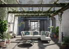 this collection features a light, elegant aluminium frame combined with the warmth of a handcrafted teak wood finish. Flows carefully balances old and new to give the pieces their defining characteristics. The unique shape of the oval legs turns the Flows sofas and loungers into one-of-a-kind pieces destined for long-lasting appreciation.