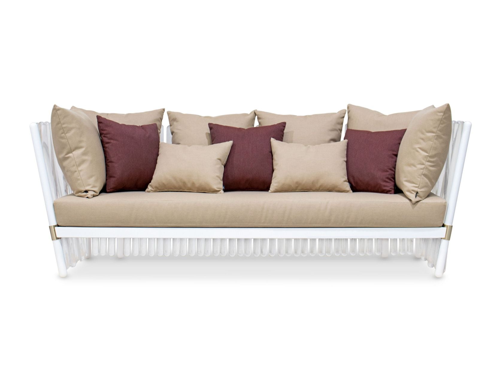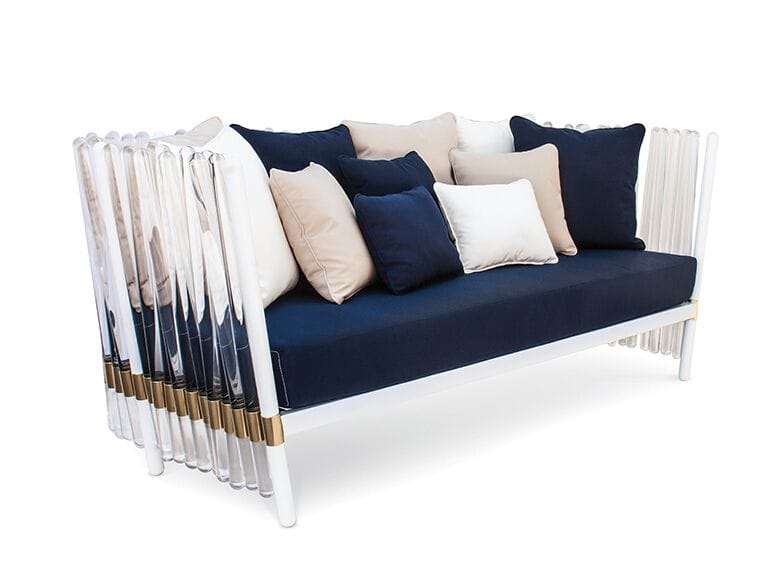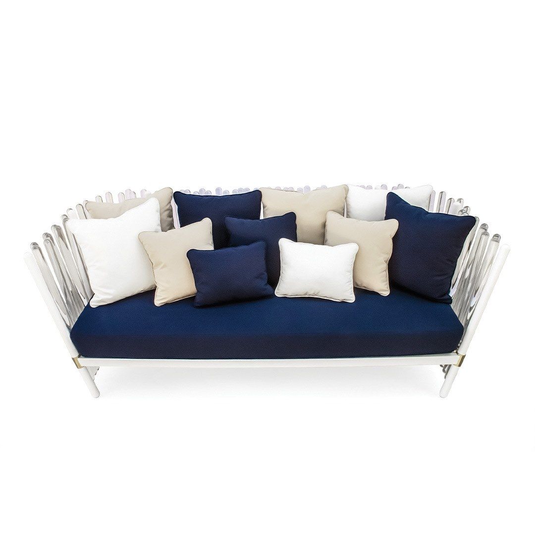 HOUDINI is a 3 seater fabric garden sofa. Relaxing in the outdoor space with a touch of magic and sophistication, it’s what the HOUDINI sofa provides. Its elegant but comfortable design transforms the outdoor moments into a magical scene. Designed with premium outdoor materials, the HOUDINI sofa blends into any space. Pillows included.