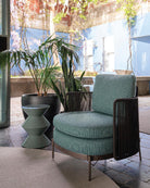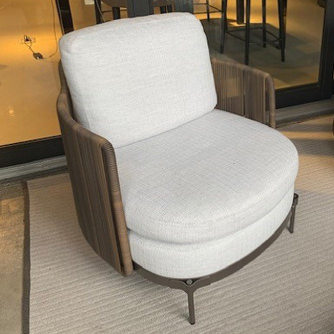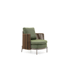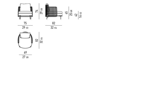 The soft curve of the shell, which designs the armrest and that accommodates the soft back cushion, highlights the pure and enveloping line of the armchair.