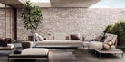 The outdoor seating system, with its highly versatile modularity, is conceived as a dynamic mosaic, composed of tesserae in simple geometric shapes, which can be pieced together as desired, and reconfigured to suit the available space and the mood to be created.