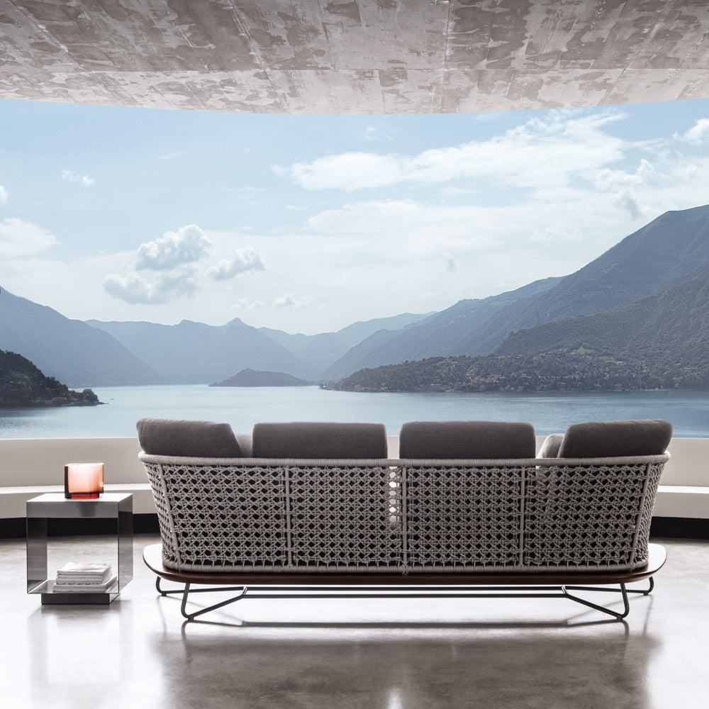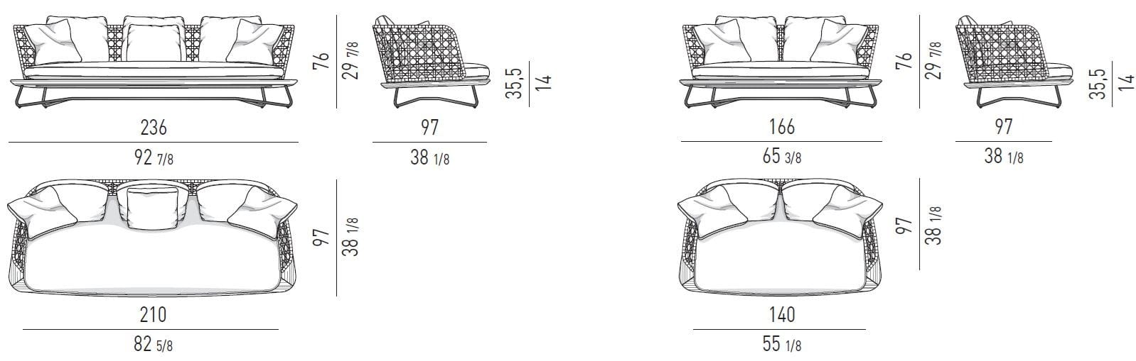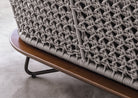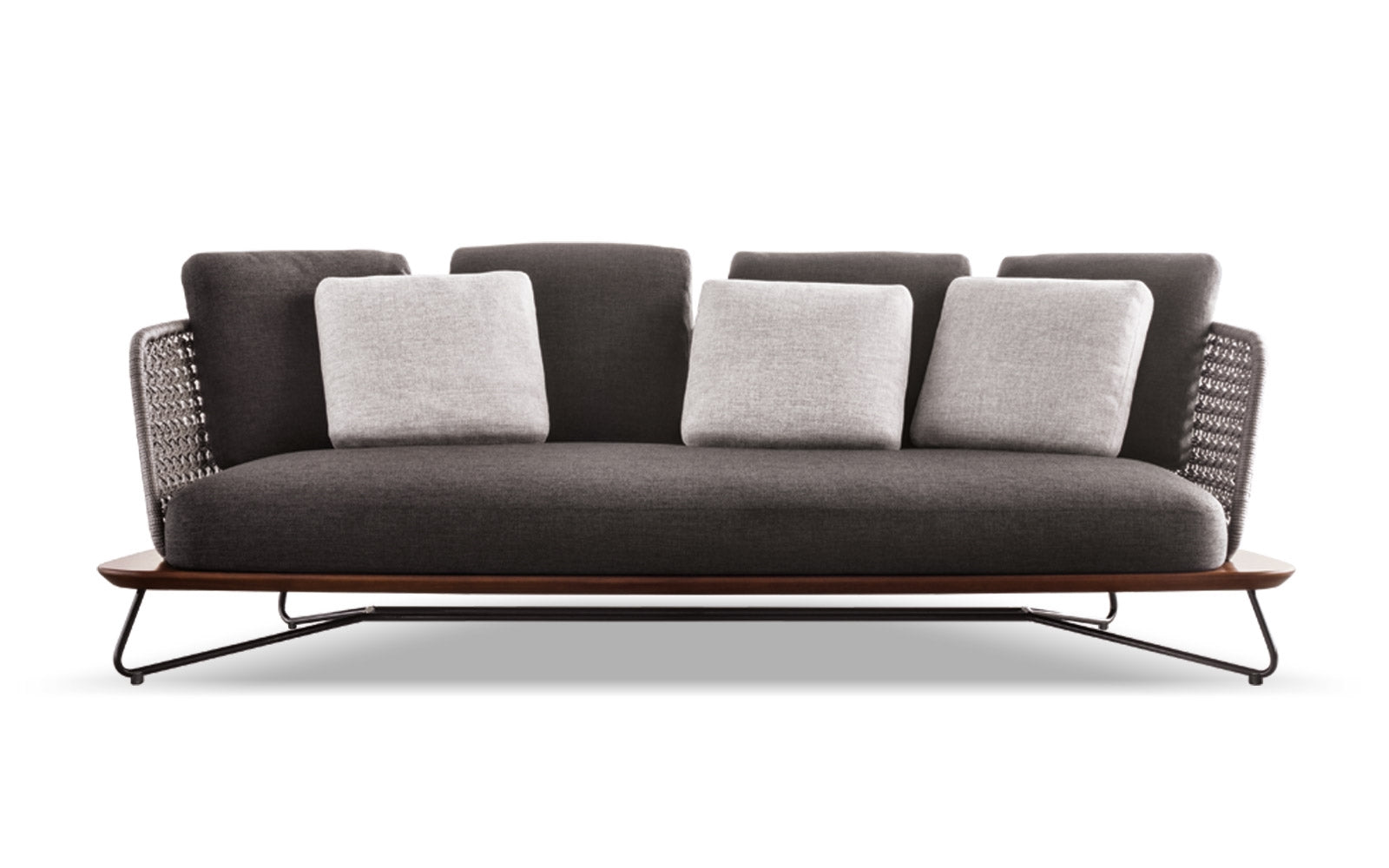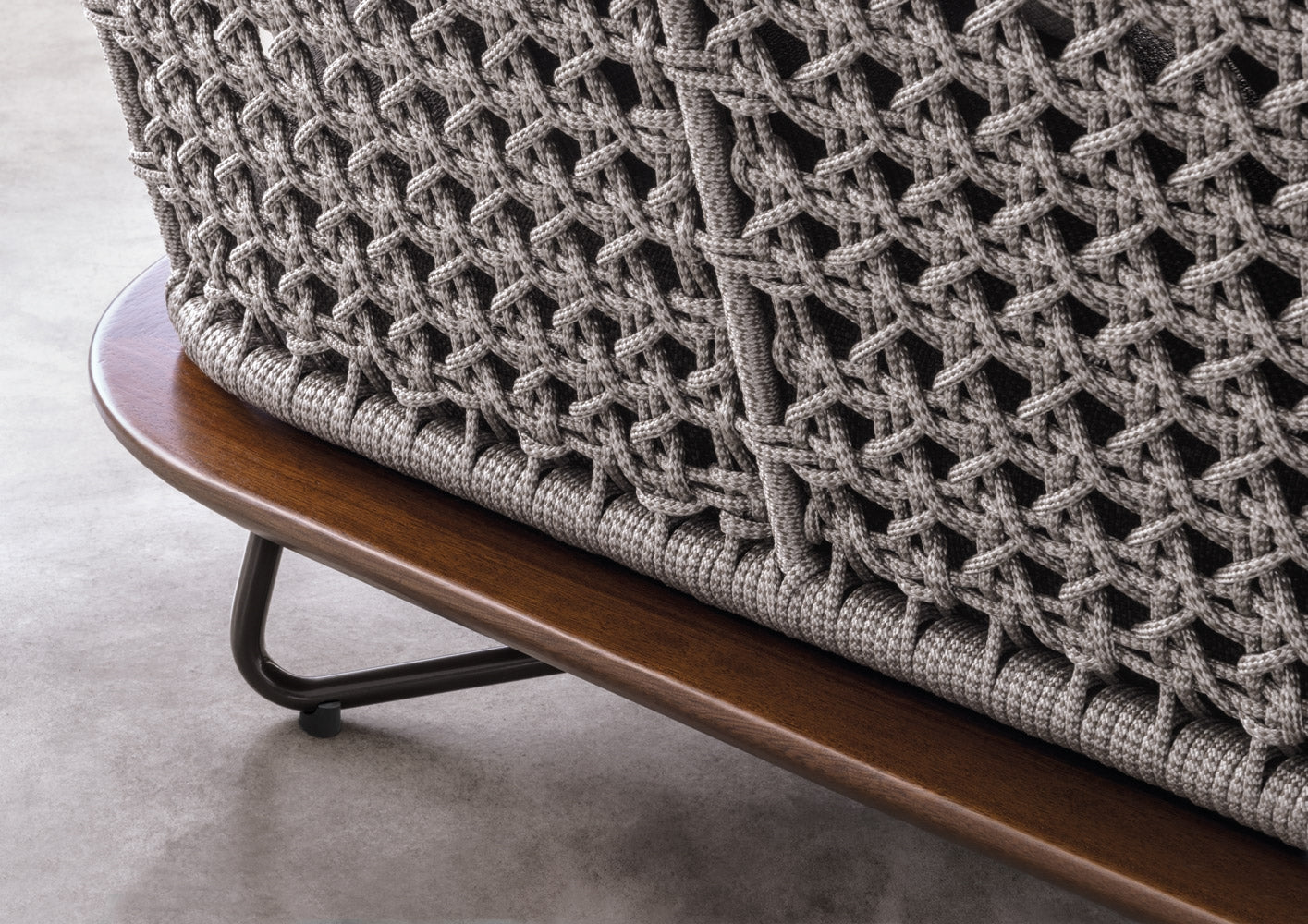 Stainless steel frame, subjected to two phases of preparation: zinc primer application for exterior use (facilitates and improves adhesion of the finish paint) and polyester powder coat for exterior use, available exclusively in polished pewter colour. Frame made of solid kiln-dried iroko heartwood.