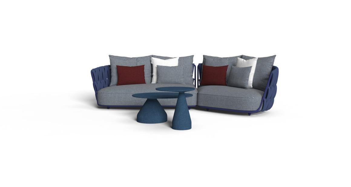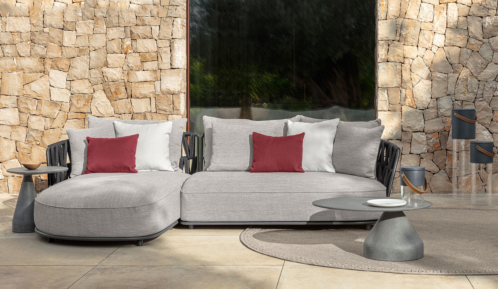 The whip modular sofa is an ode to dynamism thanks to the contrast between the soft lines of the seats and the geometries created by the padded strings, which intertwine around the aluminum structure. The generous cushioning offers a pleasant feeling of comfort and enhances the relaxation area in the garden with style and personality. The multiple possible combinations, combined with the wide choice of colors available, allows this piece of furniture to fit with versatility in any outdoor space, and customize the outdoor living to your liking.
