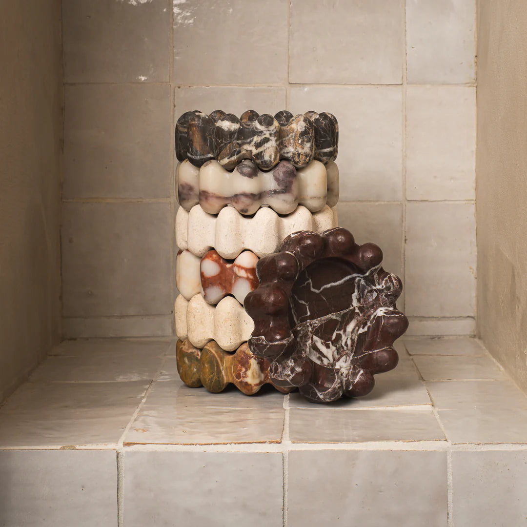 Introducing the Bobble . Hand crafted out of a unique slab of travertine marble. Use our on a stack of books, as a catchall beside the bed, or on your coffee table.