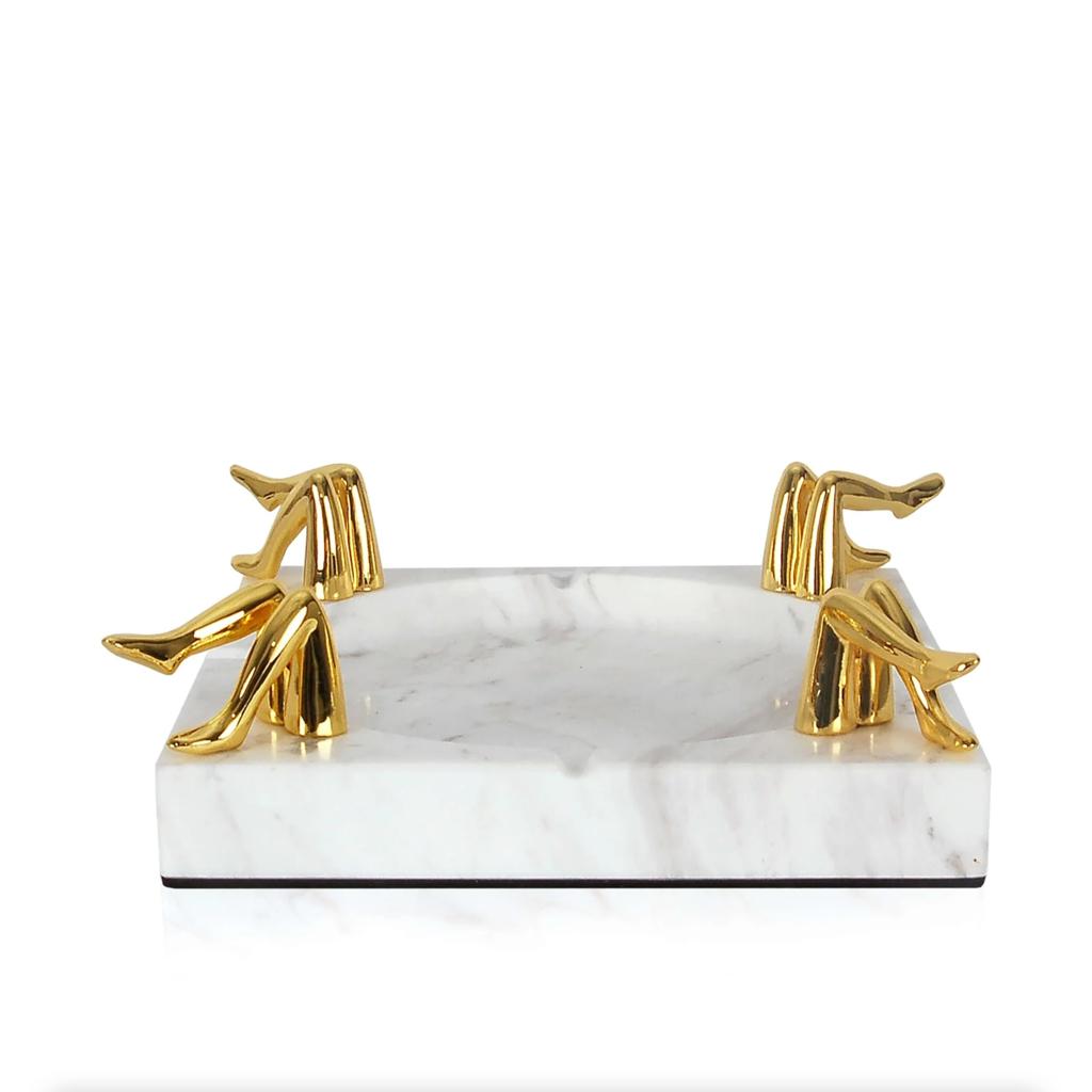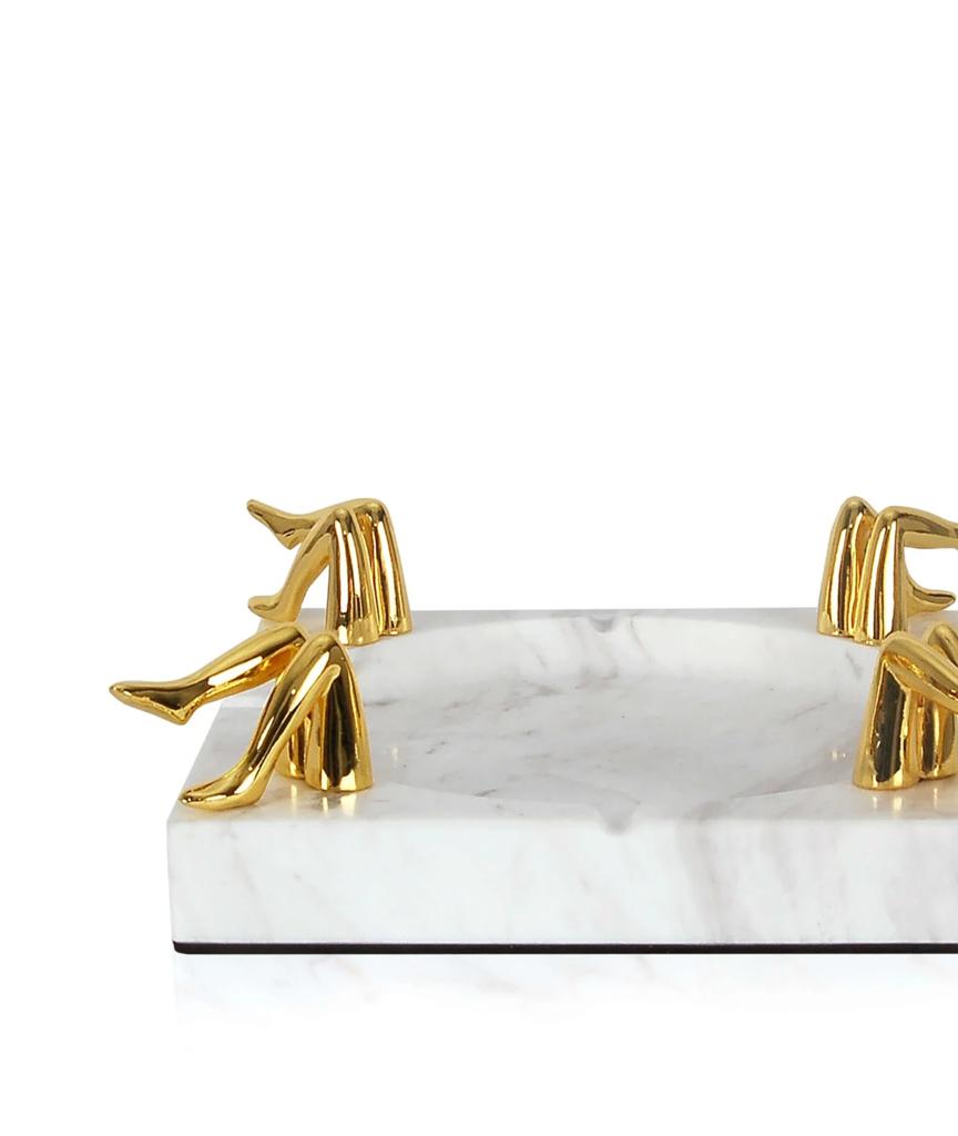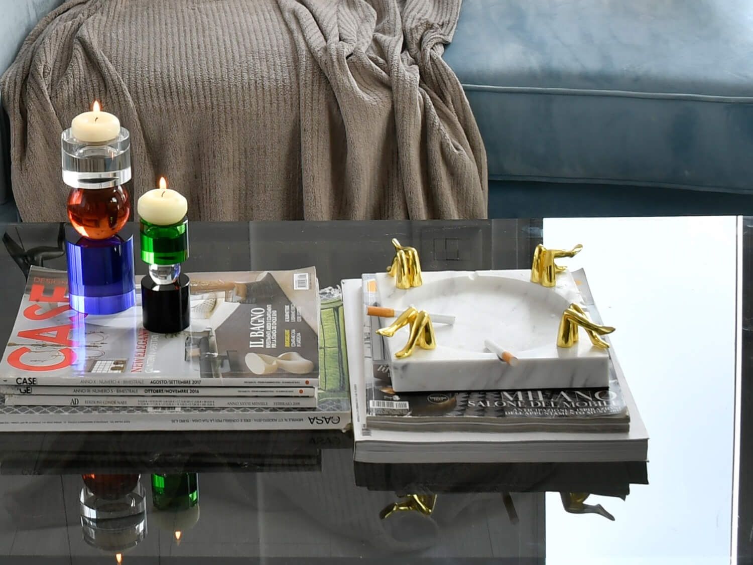 A rolling ashtray as home decor? Believe it. The fabulous marble and brass Thigh High Rolling ashtray is the big bold statement piece for your coffee table. As chic as it is functional... this is a tray with benefits. Wipe it with a damp cloth to clean.
