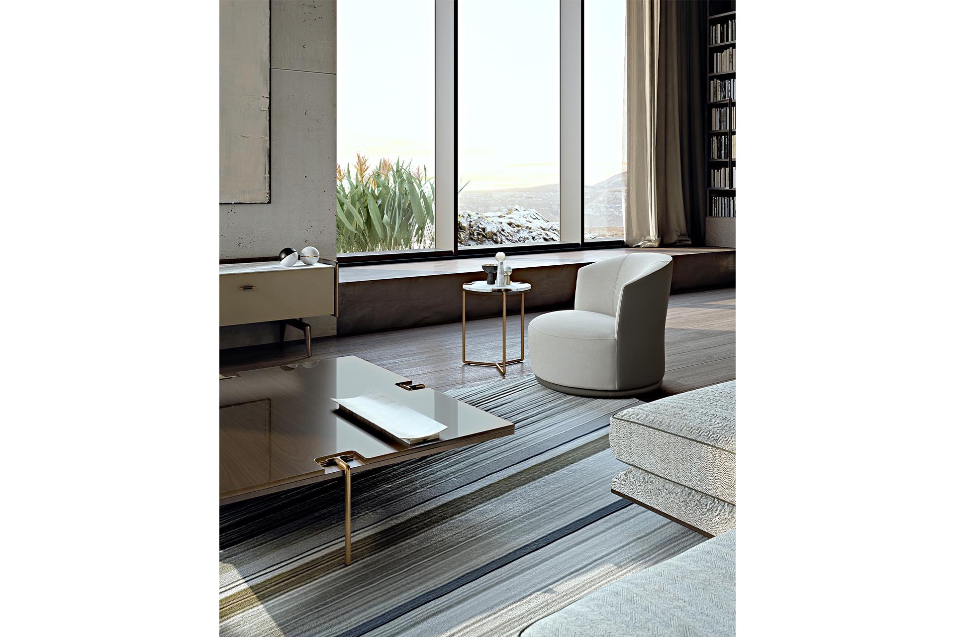 Blues modular sofa, thanks to an ample choice of modules, starting from the central ones up to the end pieces and the chaise longue, including the corner units and the poufs, the modular compositions are several and satisfy most requirements. Even as a single piece, the Blues sofa is outstanding for its minimalist design and at the same time for the richness of its details: the walnut wood base, linear and uniform is supported by tubular metal legs. The Blues sofa is available in different finishes as per sample book.