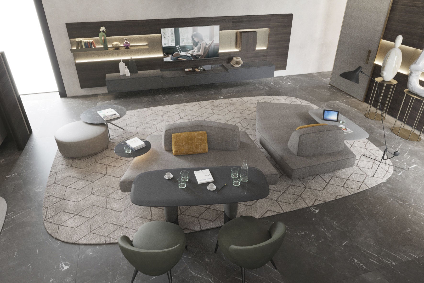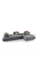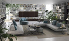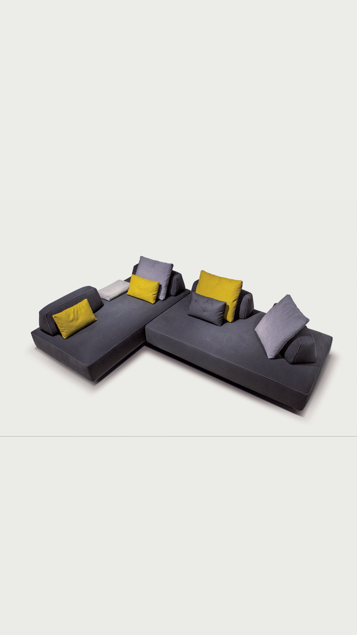 The evolution of the FILIP system interprets different aesthetic tastes, enriched by a new version characterised by supreme lightness and formal balance. Backs can be conveniently moved along the large island which appears suspended and transforms to adapt to interiors and personal comfort requirements, from a compact sofa into a double-faced chaise longue.