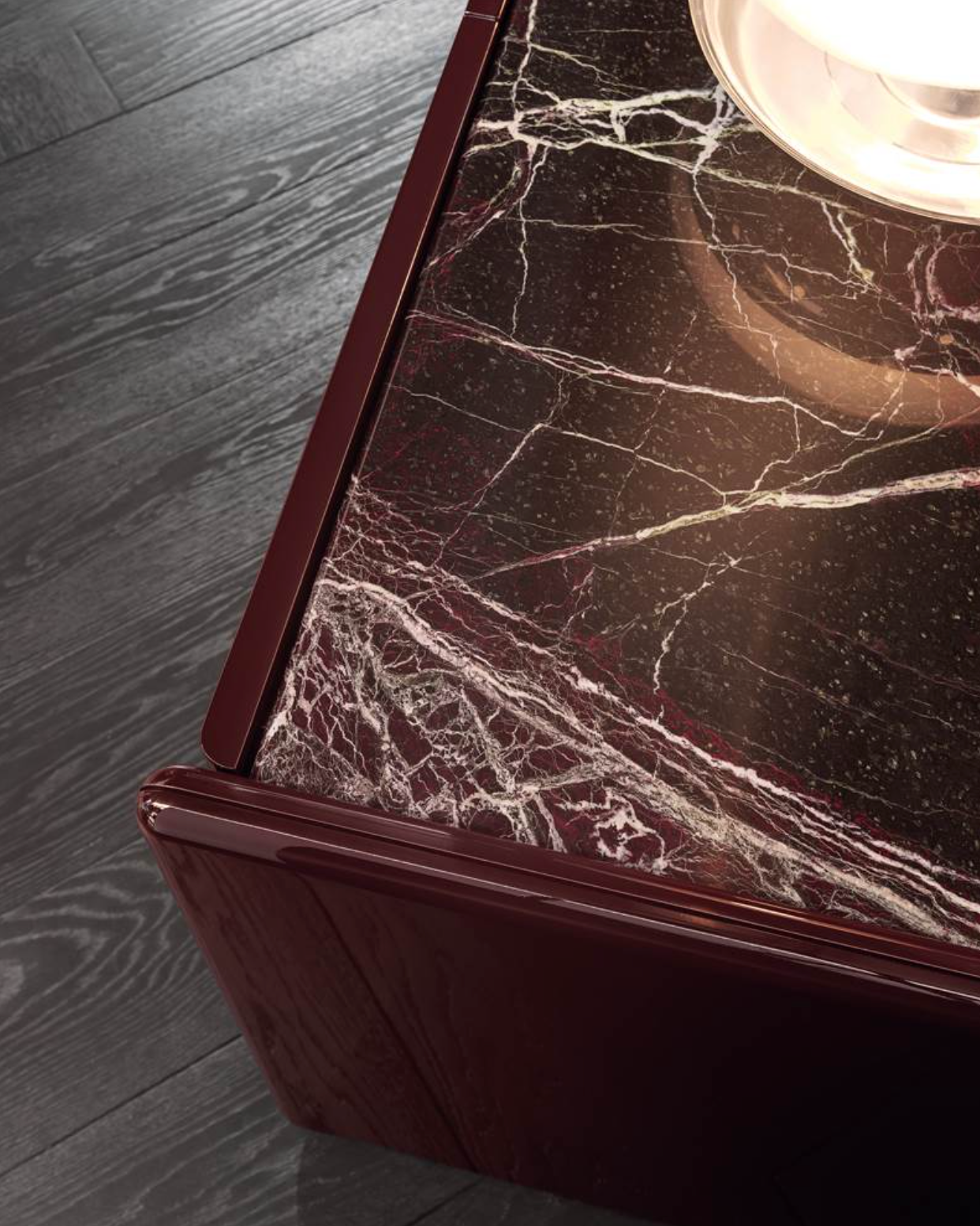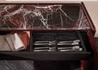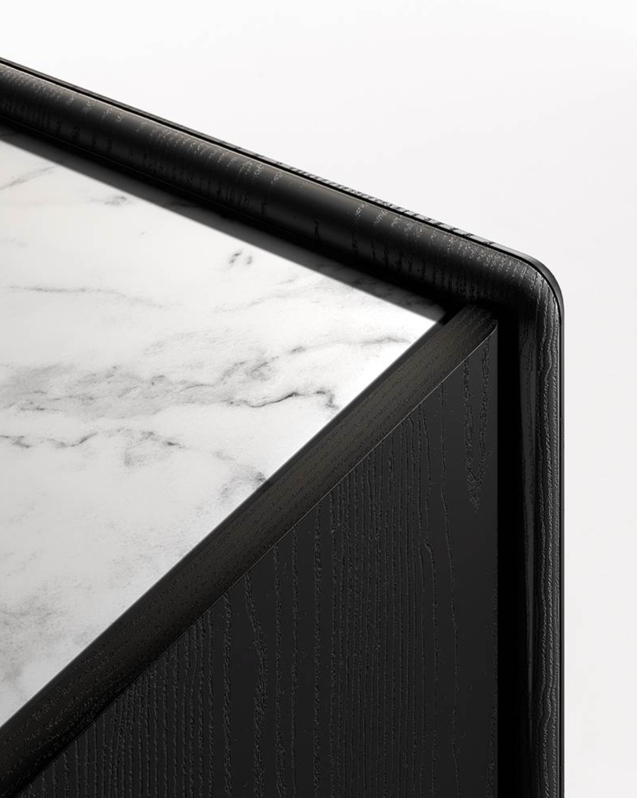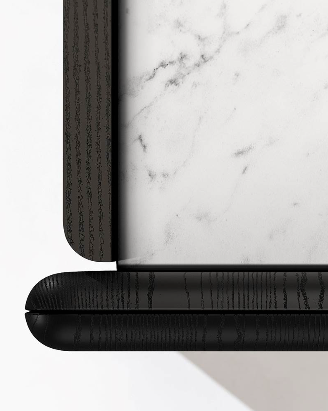 A storage unit system that embodies the essence of effortless elegance through its essential geometric lines: the design of Logan exudes a sense of refinement, blending sculptural beauty and understated grace. Made from a combination of different materials - lacquered wood, wood and marble - its stylistic feature lies in the particular join between its shaped sides and recessed top.