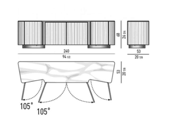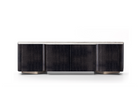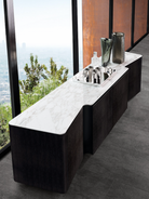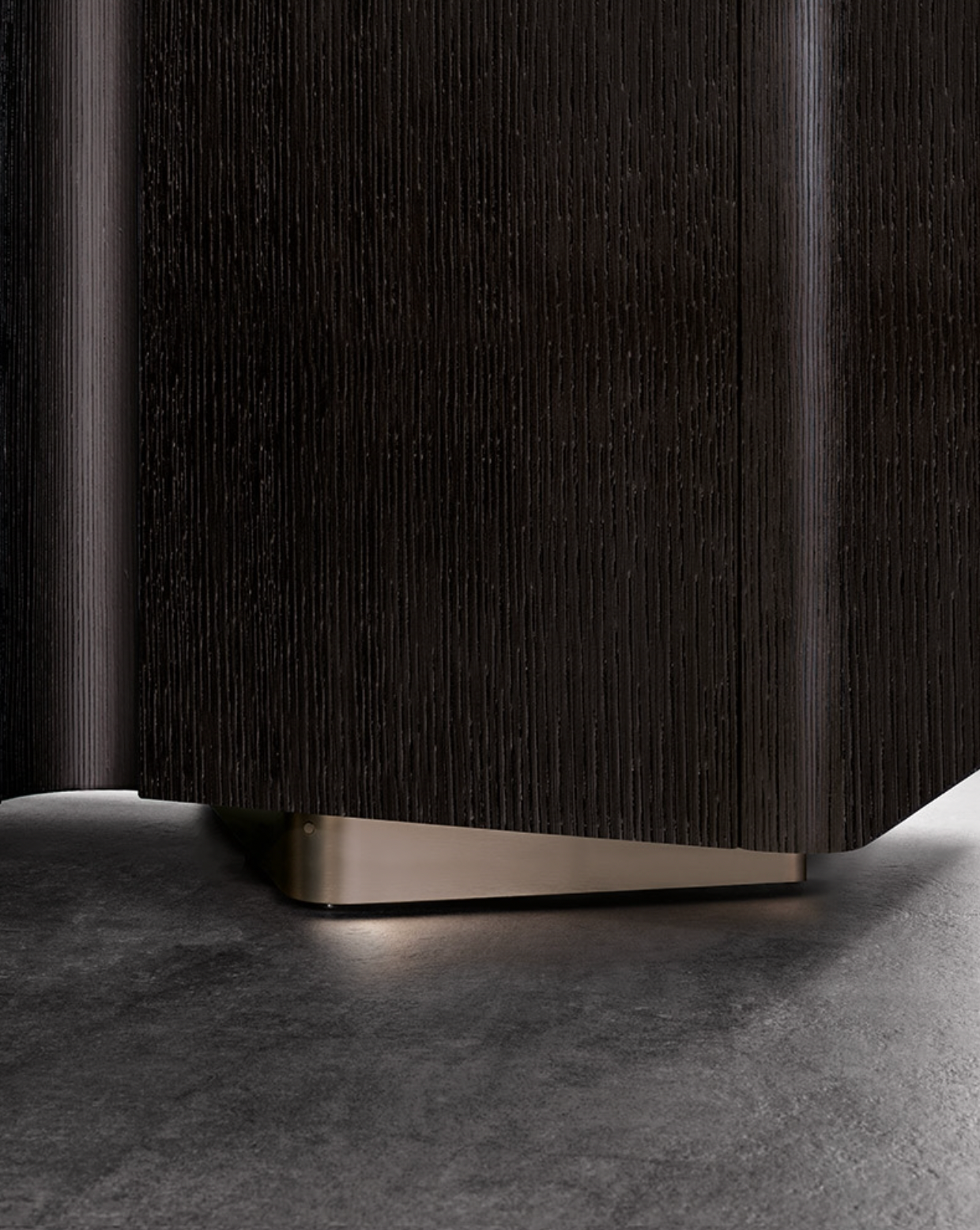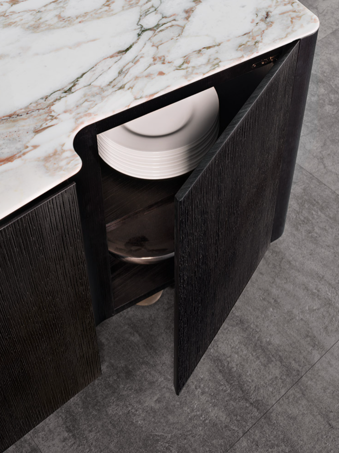Synonym of refined cabinet-making and high-end technology, they have in common the preciousness of the materials, from the brushed ash or the opaque ebony of the structure to the Calacatta marble or the flush-fitted tops in wood matching the colour of the structure, to the glossy painted metal base.