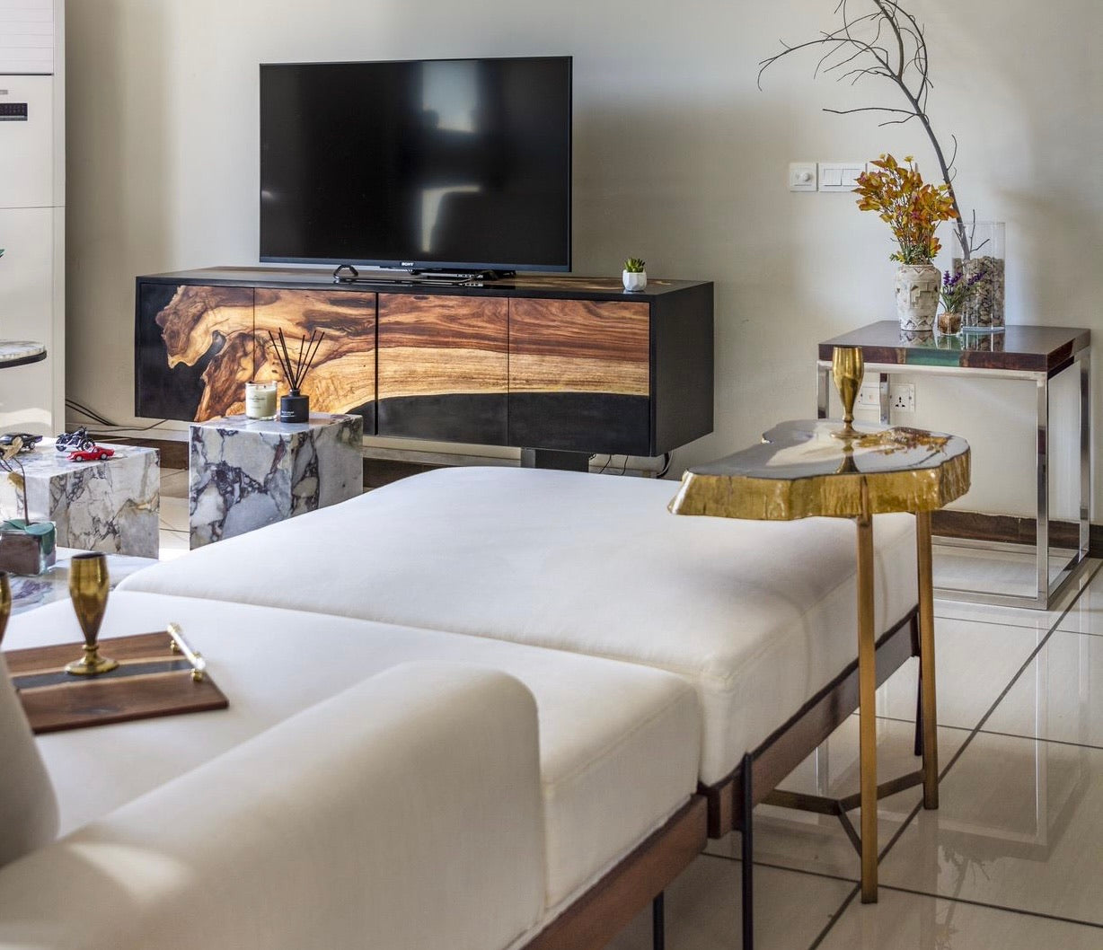 Epoxy Resin sunken Live Edge wood SQUARE Cocktail End Table
