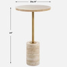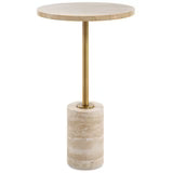 The Malya Accent Table pairs the natural beauty of travertine with refined metal detailing, creating an elegant balance of organic texture and sophisticated design. Featuring a travertine top and base anchored by a brass-finished metal stem, this versatile piece functions beautifully as a side or occasional table, effortlessly complementing a wide range of interior styles.