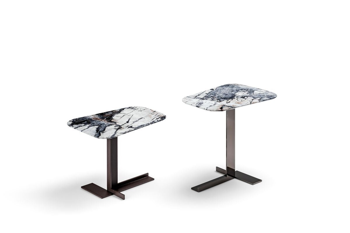 The iconic LITH collection is expanded by three new versions of side tables in different shapes and heights and by an elegant console table.‎ The surfaces are characterised by geometric forms with rounded corners, while the metal bases form highly sculptural structures, in a cosmopolitan design dialogue.‎