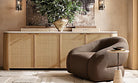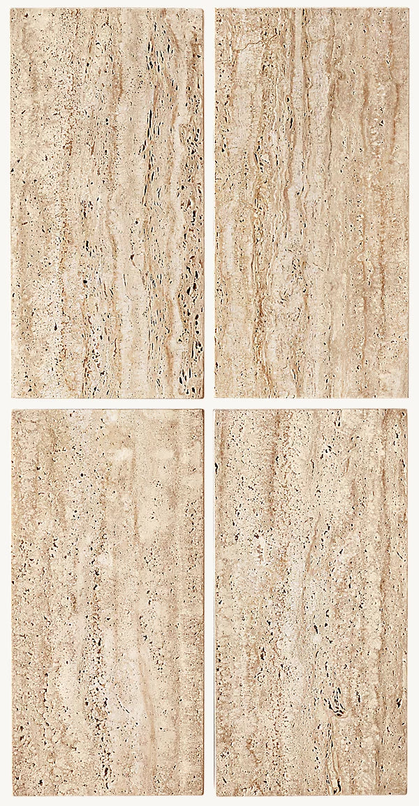 Italian travertine with a satin finish and visible natural pitting