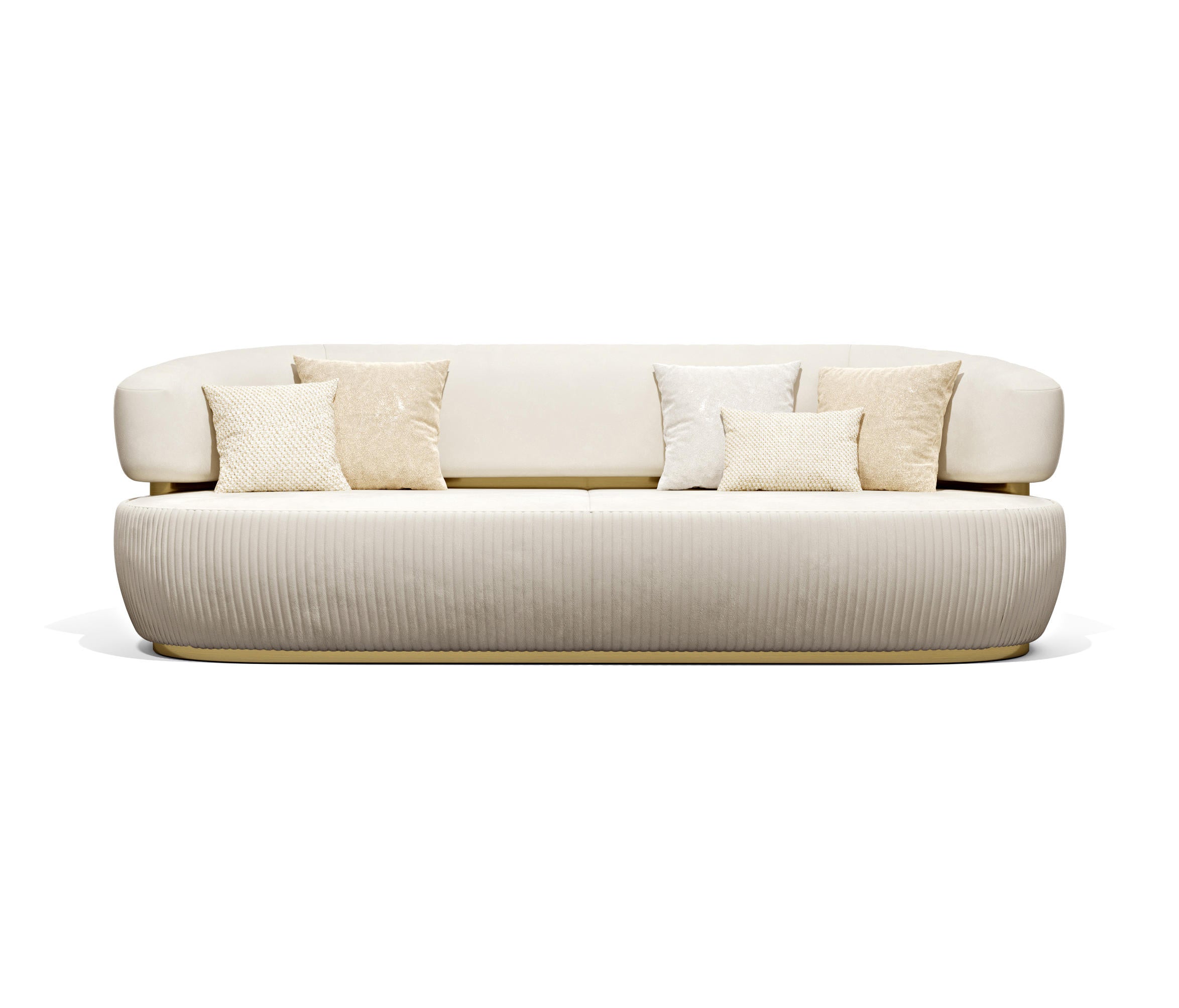The finely contoured shell accommodates the seat, opening up the original metal finishing element on the backrest. The balance between the rigid structure and the soft volume give life to seats with a sinuous, enveloping look.