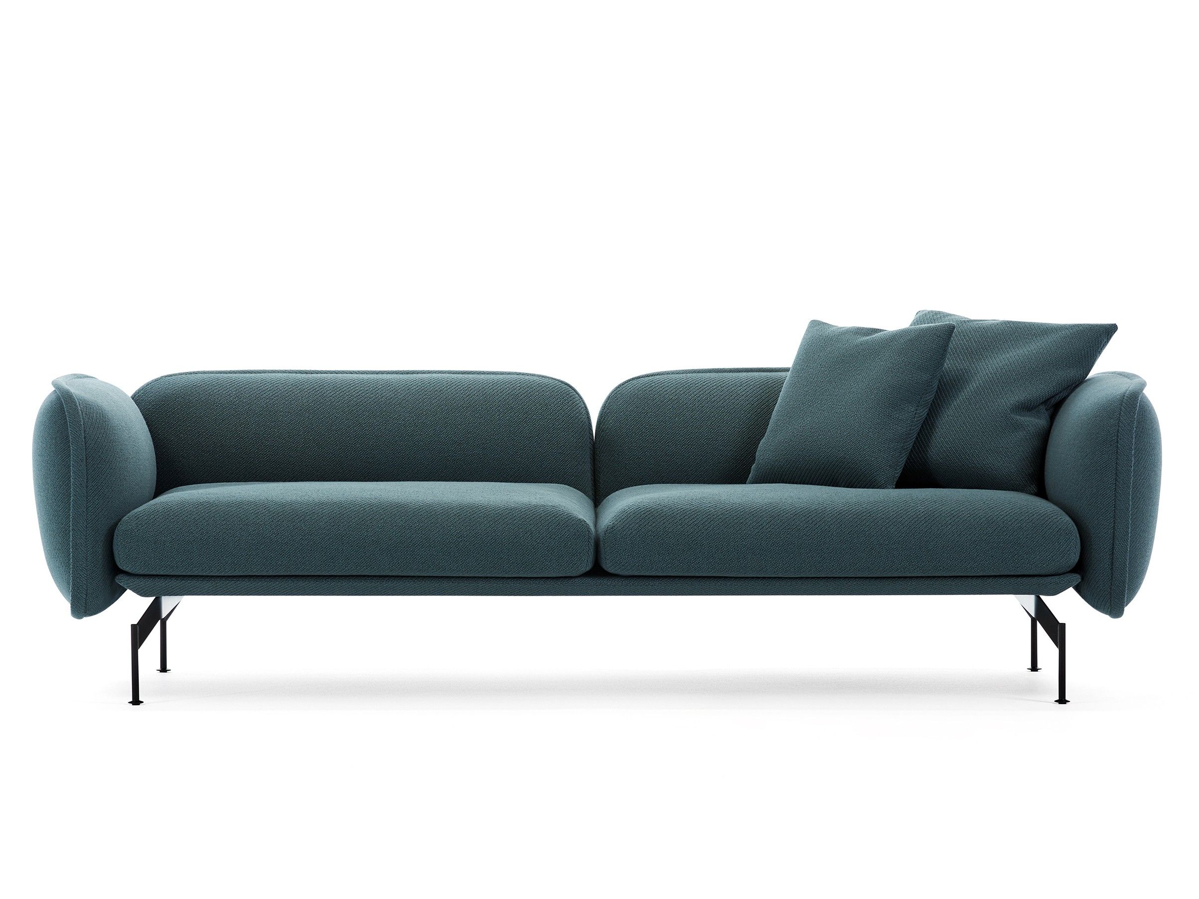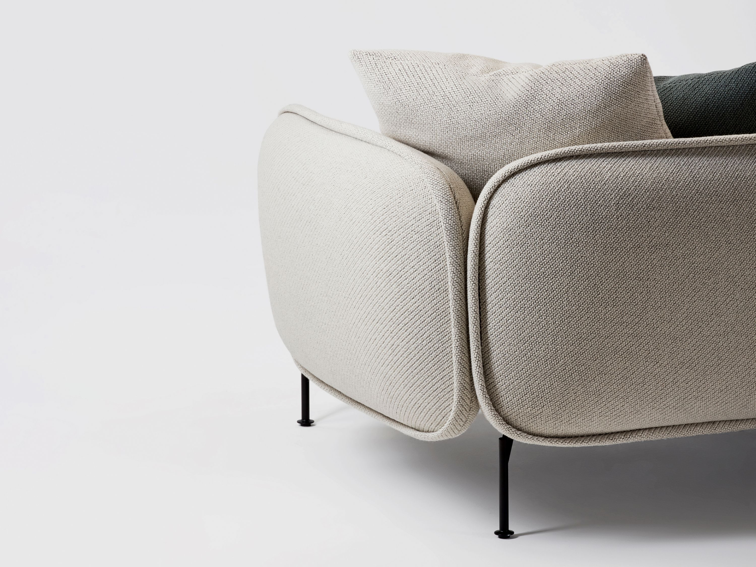 The Echo modular sofa provides an exceptionally relaxing experience of lying on the most comfortable bed. This sumptuous quality of comfort extends to the overall design of the sofa, and is especially accentuated in its seating cushion. The sofa is suitable for informal sitting and lying down, as the backrest and armrest are ergonomically adapted for relaxed reclining. Echo is also available in regular seating depth modules and can be used in the business premises. The whole system is supremely modular as it allows diverse combinations in terms of length and width. Echo comes in textile or in combination with leather on the outer sides of the backrest and armrests.