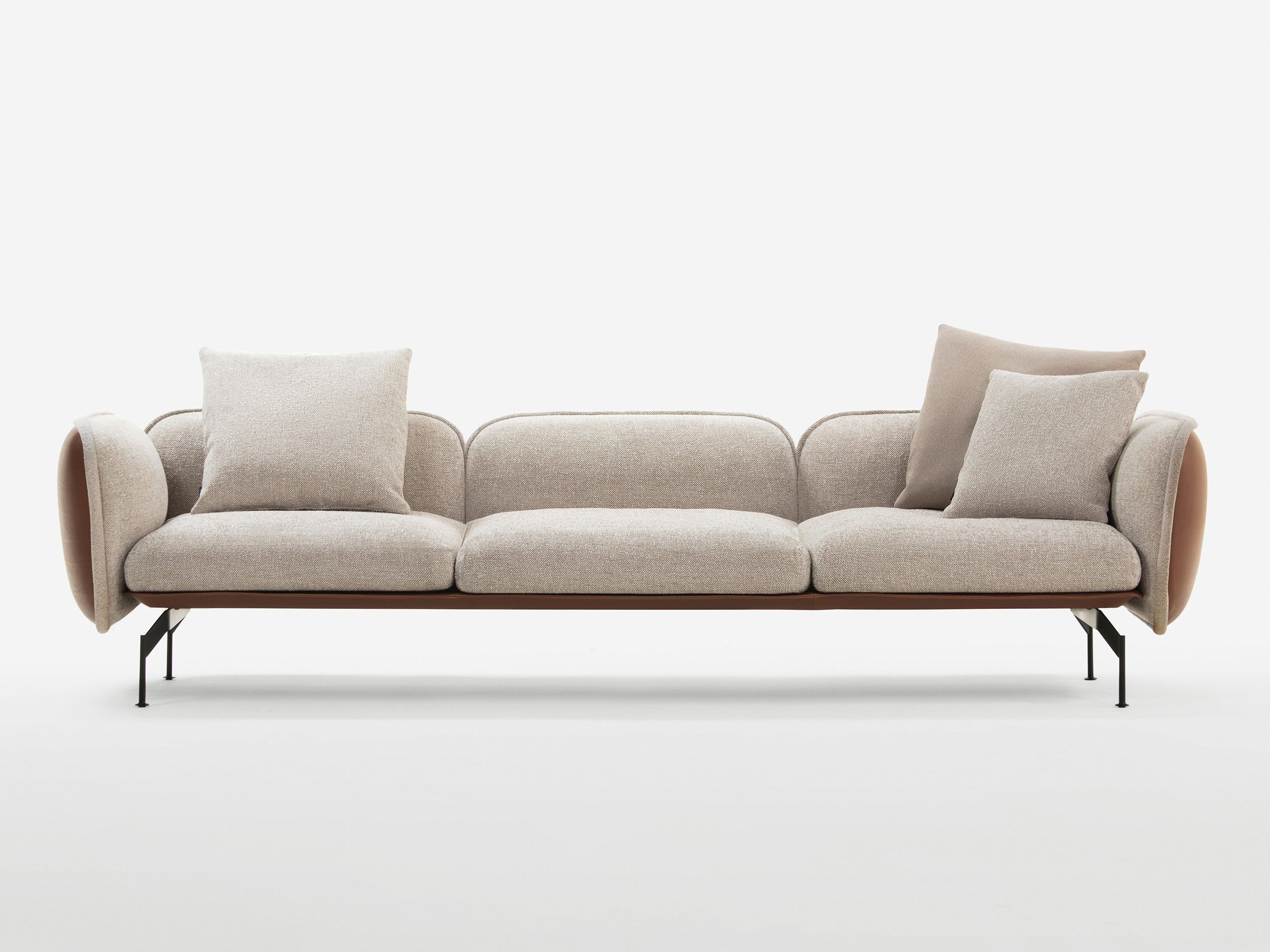 The Echo modular sofa provides an exceptionally relaxing experience of lying on the most comfortable bed. This sumptuous quality of comfort extends to the overall design of the sofa, and is especially accentuated in its seating cushion. The sofa is suitable for informal sitting and lying down, as the backrest and armrest are ergonomically adapted for relaxed reclining. Echo is also available in regular seating depth modules and can be used in the business premises. The whole system is supremely modular as it allows diverse combinations in terms of length and width. Echo comes in textile or in combination with leather on the outer sides of the backrest and armrests.