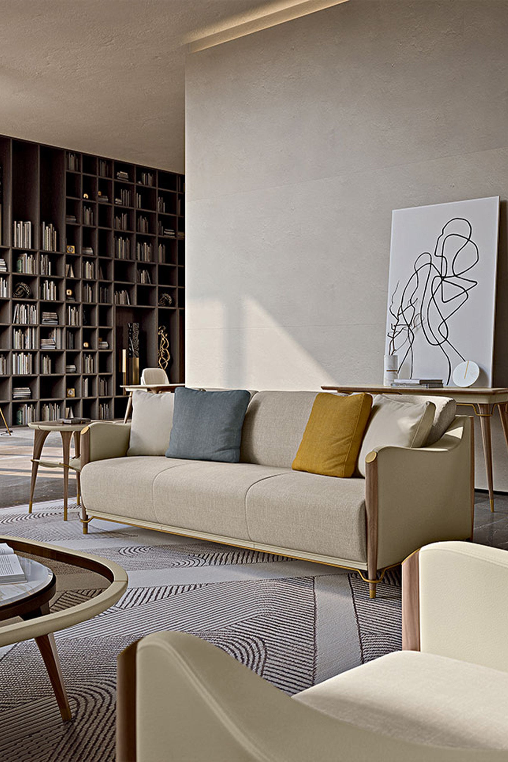 Soft, enveloping, almost circular lines define the volumes of all the elements in the collection. The design, certainly distinctive and recognizable, becomes more agile and slender, but embellished with details that identify the manufacturing capacity of the company in Brianza and that remain the best ambassadors of Made in Italy in the world.
