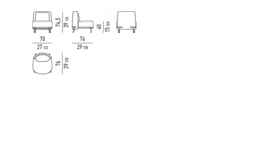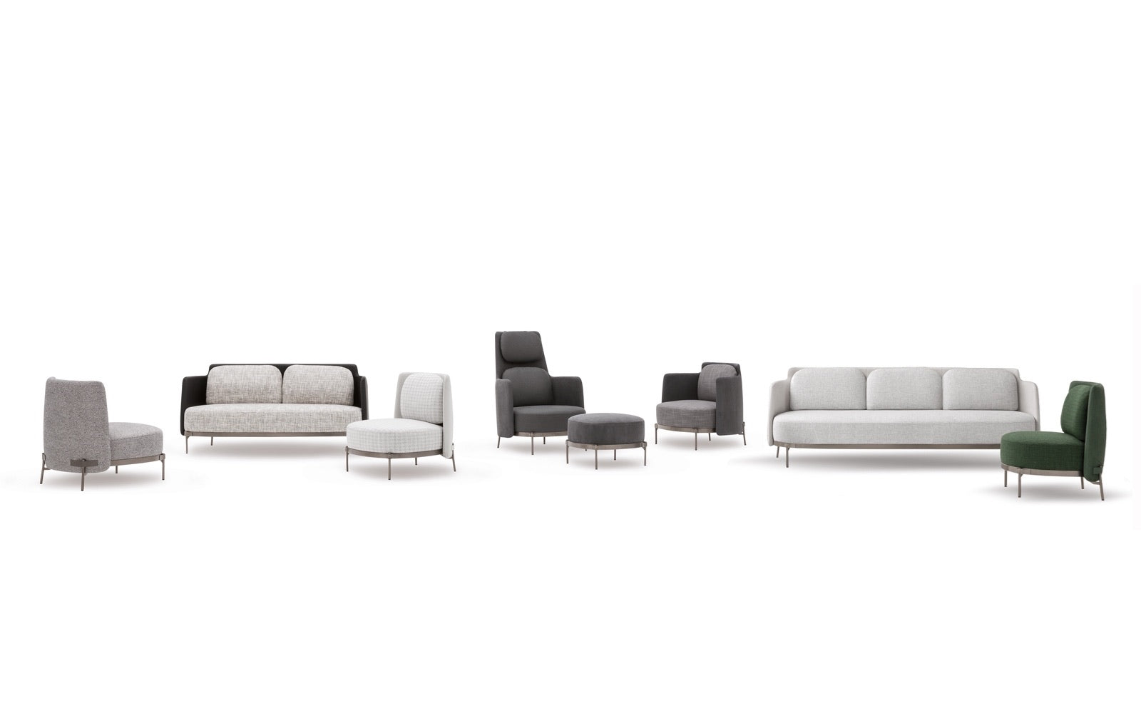 Tape is a collection of seats with a strong personality, characterised by the light silhouette, and consists of a comprehensive range of models: armchair with and without armrests, lounge armchair, bergère, two and three seater sofa and ottoman.
