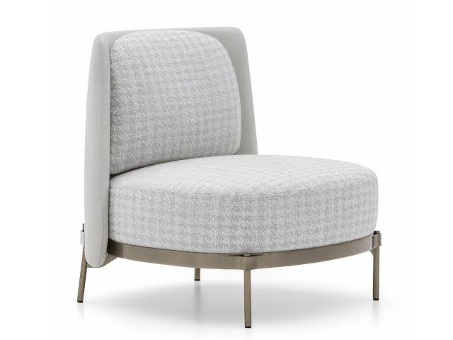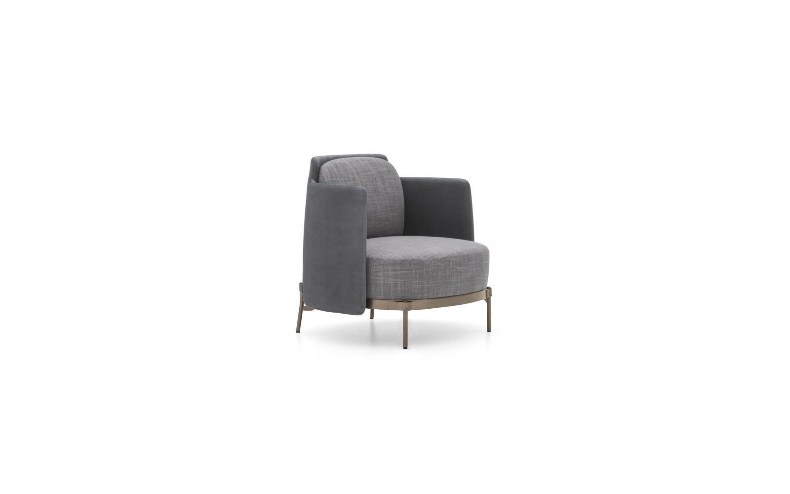 The soft curve of the shell, which designs the armrest and that accommodates the soft back cushion, highlights the pure and enveloping line of the armchair.