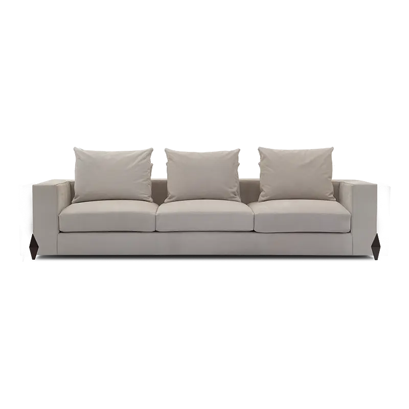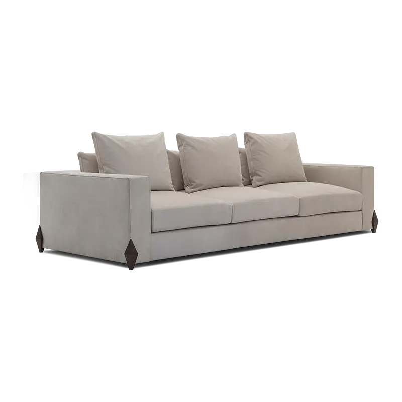 Named after the Italian master of Modernism, designer, architect, artist, and publisher Gio Ponti, this 3-seater sofa forms part of a collection of sofas and sectional sofas. Featuring straight lines and hand-carved diamond detailing on the legs, the contemporary look is softened by the supreme comfort of the upholstery.