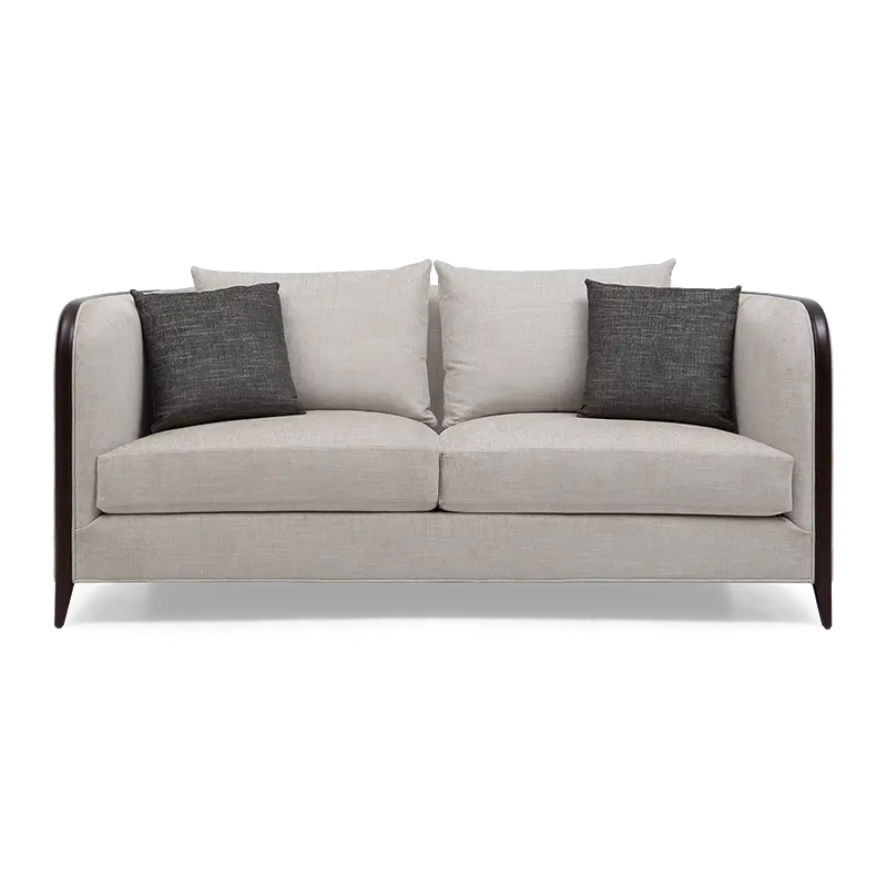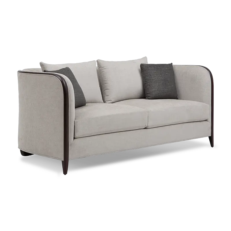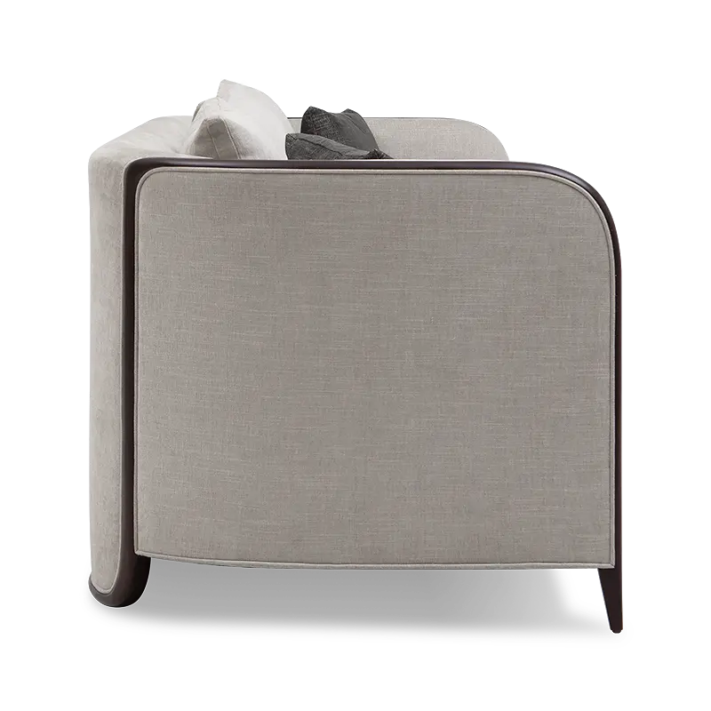 This stunning sofa draws inspiration from iconic Art Deco design, featuring a single sweeping line of carved wood that forms the legs, frame, and decorative ‘U’-shaped back. Its elegant silhouette blends sculptural artistry with timeless comfort, making it a true statement piece for any interior.