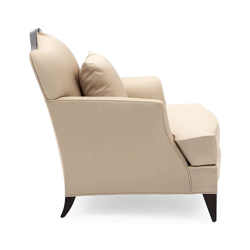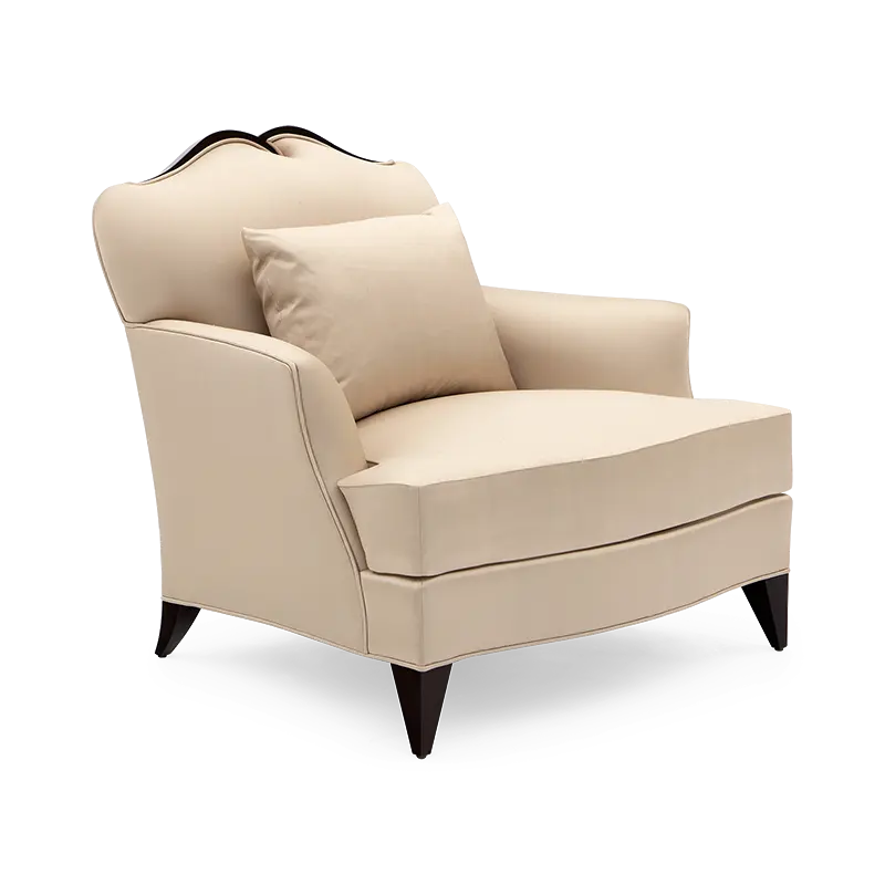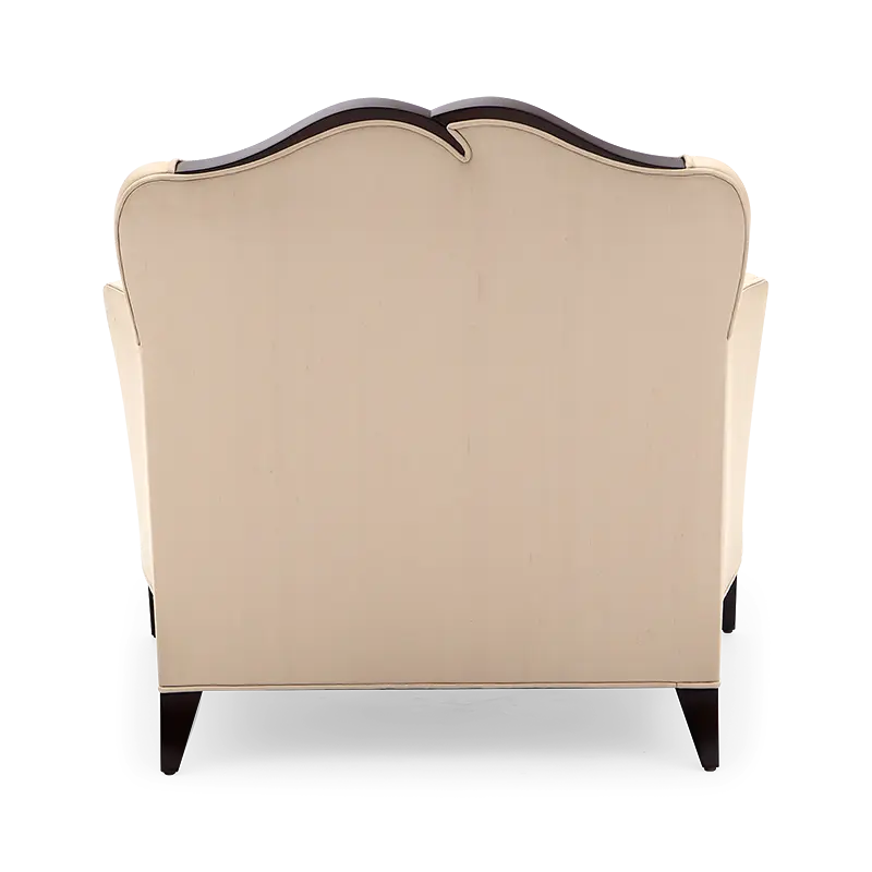 A delicate eyebrow silhouette defines this refined armchair, offering understated elegance and pure, graceful lines that allow it to blend seamlessly into any interior setting.