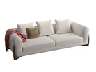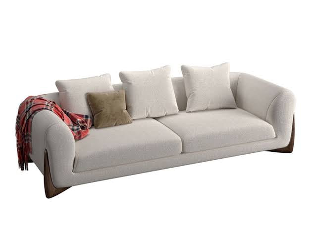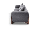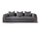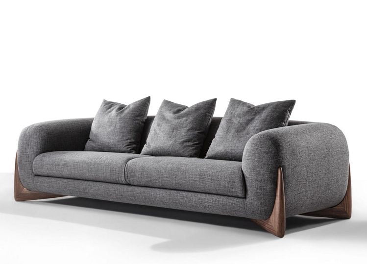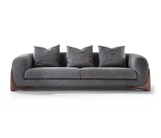 Sofa with four feet in solid rosewood and cover in the fabrics of the collection. Inner structure in poplar plywood and solid fir wood with elastic belts. The padding is in crush-proof polyurethane with different densities. Seat cushions in crush-proof polyurethane foam covered by padding paired with cotton and velveteen fabrics
