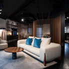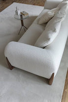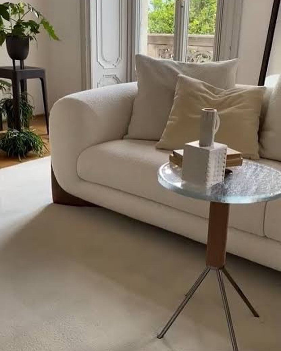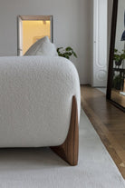 Sofa with four feet in solid rosewood and cover in the fabrics of the collection. Inner structure in poplar plywood and solid fir wood with elastic belts. The padding is in crush-proof polyurethane with different densities. Seat cushions in crush-proof polyurethane foam covered by padding paired with cotton and velveteen fabrics