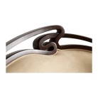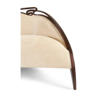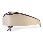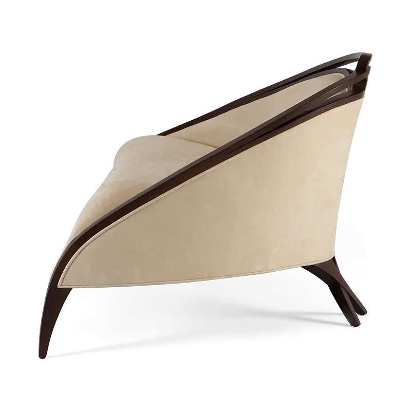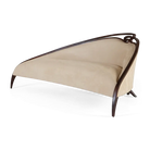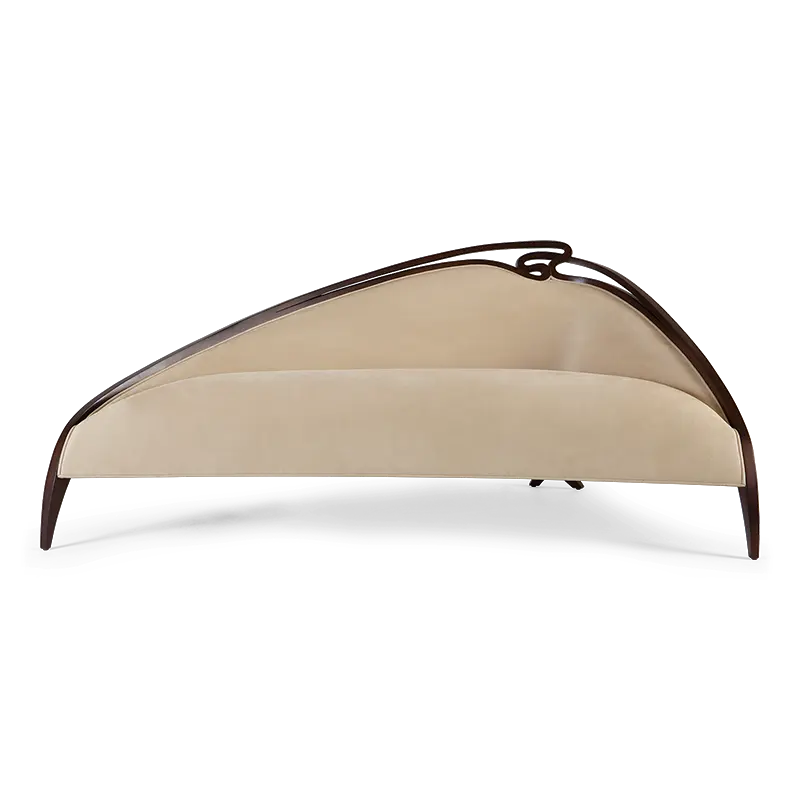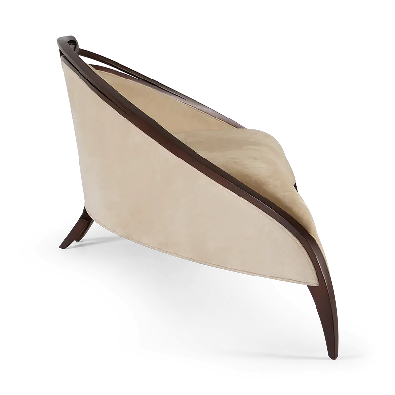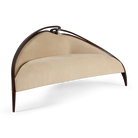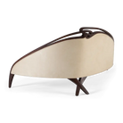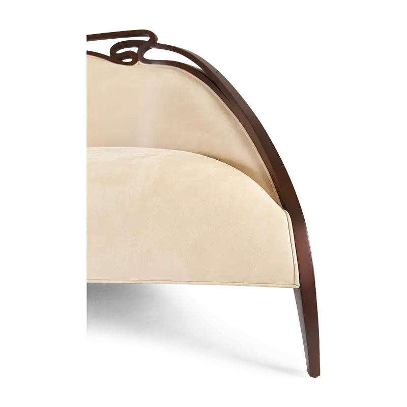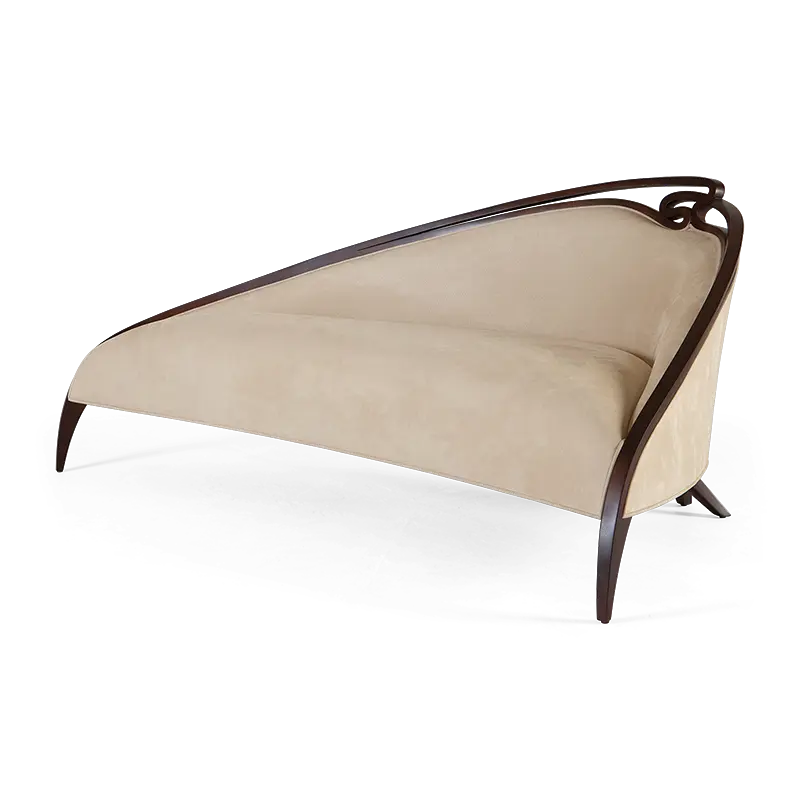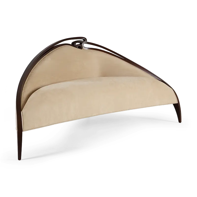 This curvaceous loveseat features an asymmetric right slant, topped by an intricate swirl of exquisite carving and the signature Chris-cross legs. Also available in a left-hand version.