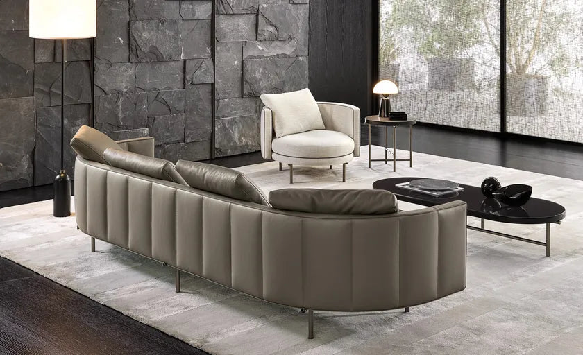 Part of the Torii family, which includes sofas with high or low backrests, inclined sofas with dual depths, armchairs, lounge and dining armchairs, ottomans, coffee tables, and a slim oval console table