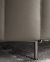 Eco-leather or eco-nabuk piping outlining the cushioning for a couture finish
