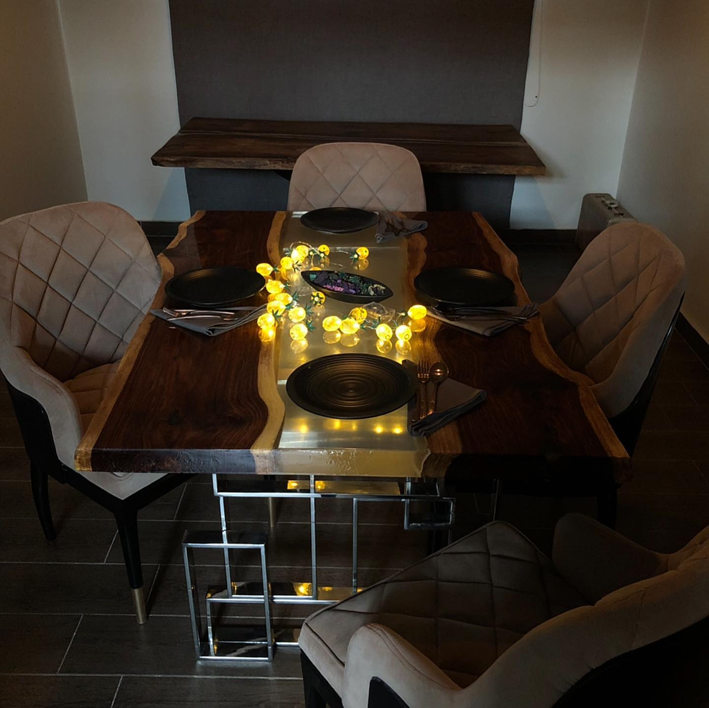 Hermès Live Edge Epoxy Resin Dining For 6 Person.