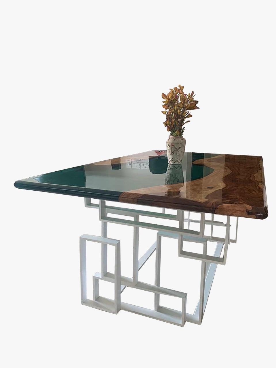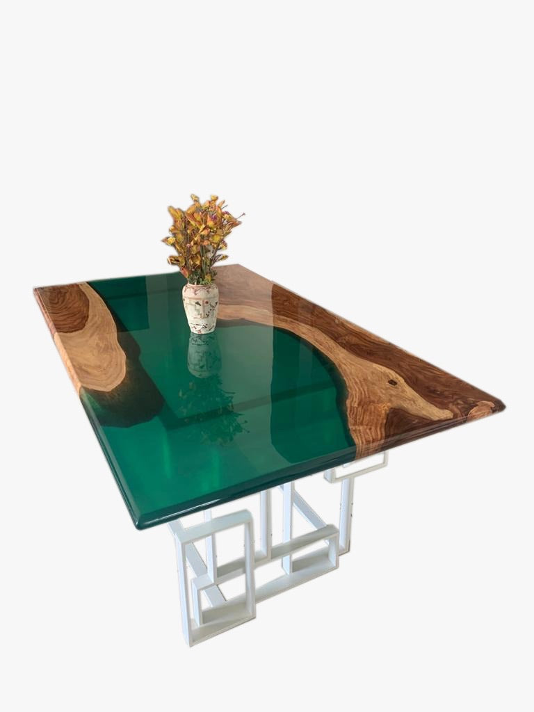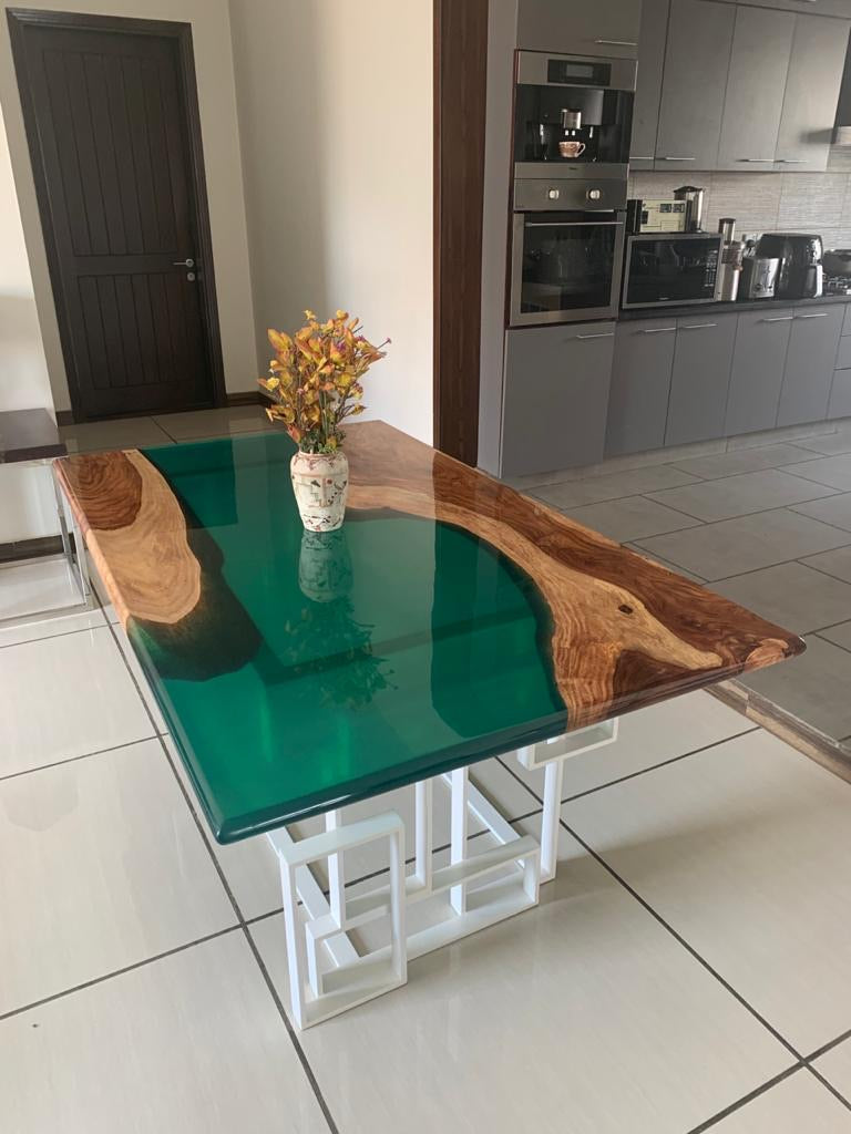 Hex Wood straight edge Epoxy Resin Dining Table.
