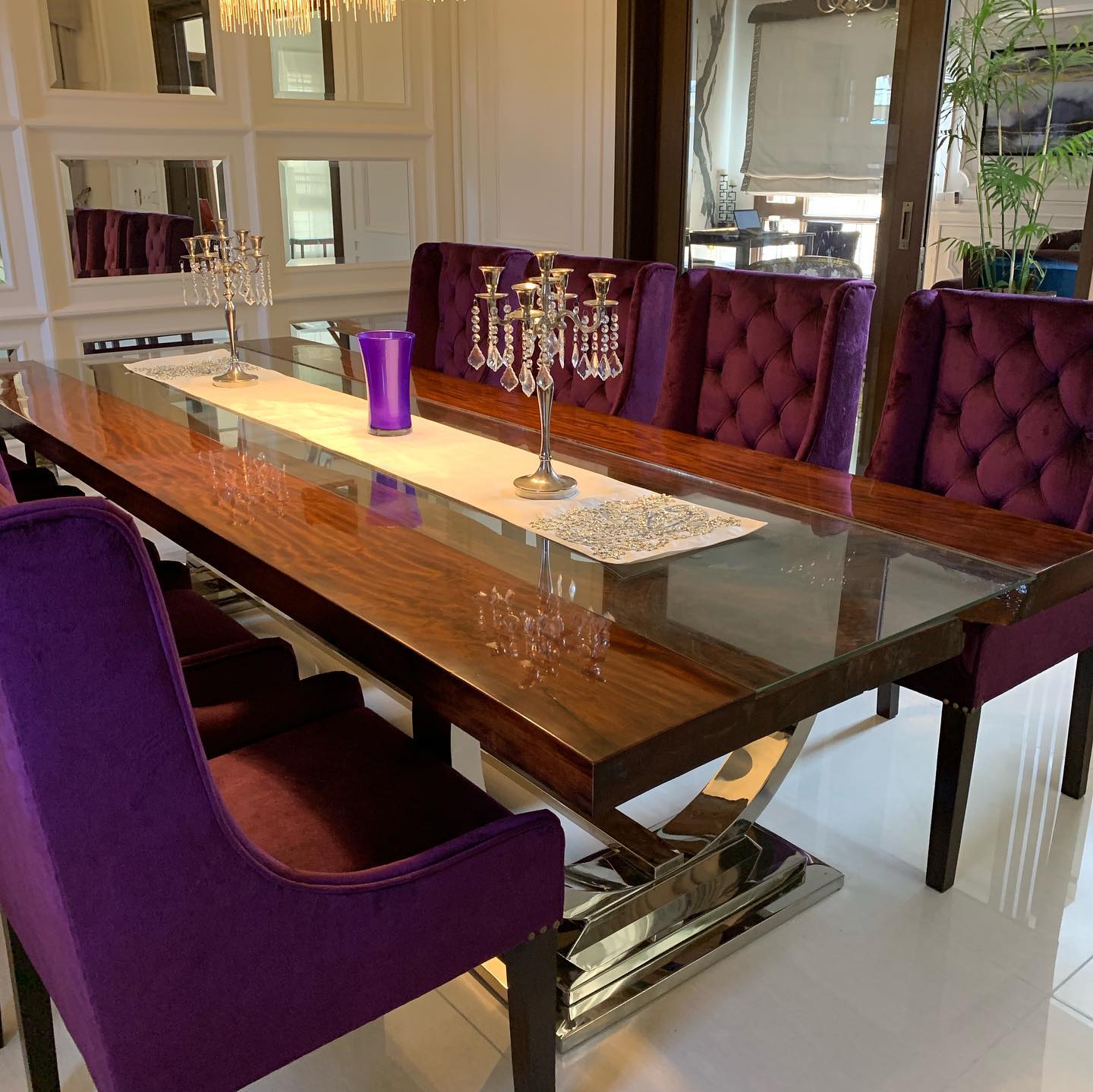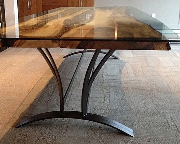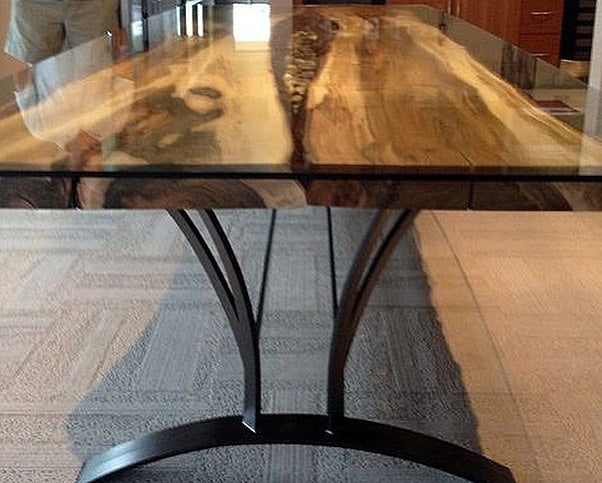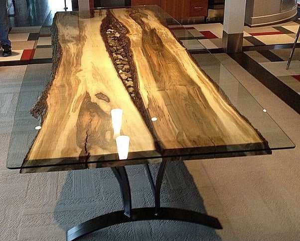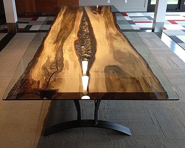 Live Edge Clear Glass River Mid-Century Stainless steel Ring Dinette Table