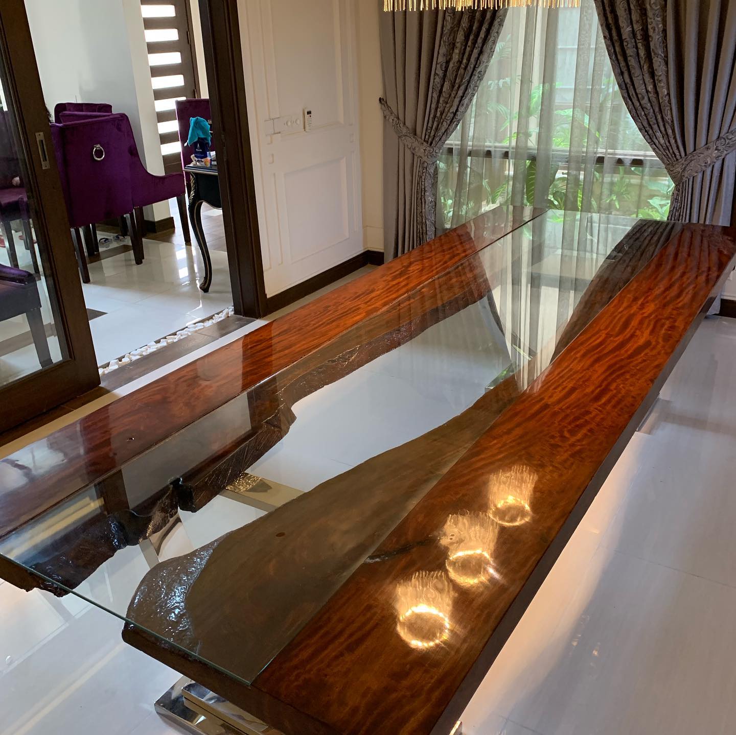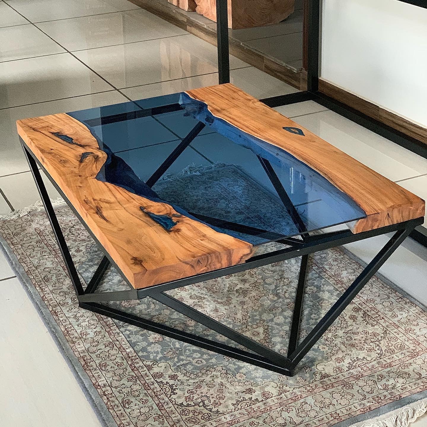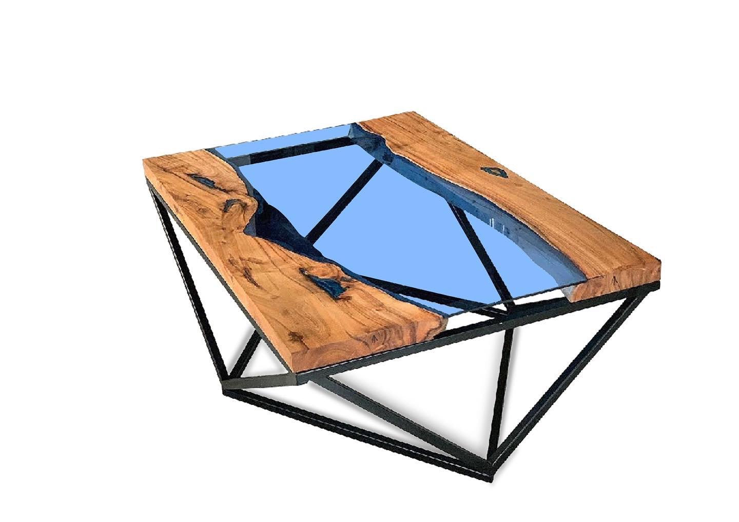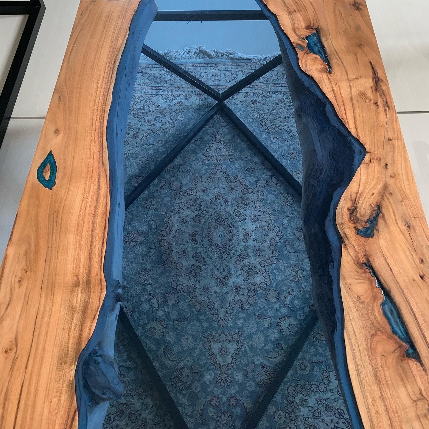Live Edge Epoxy Resin Art Glass River Coffee Table