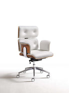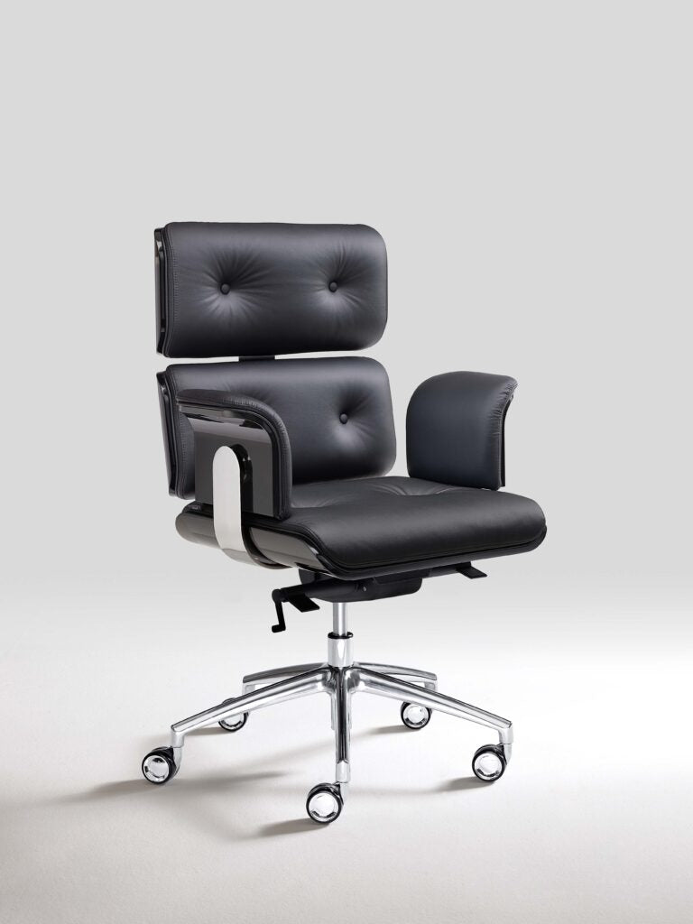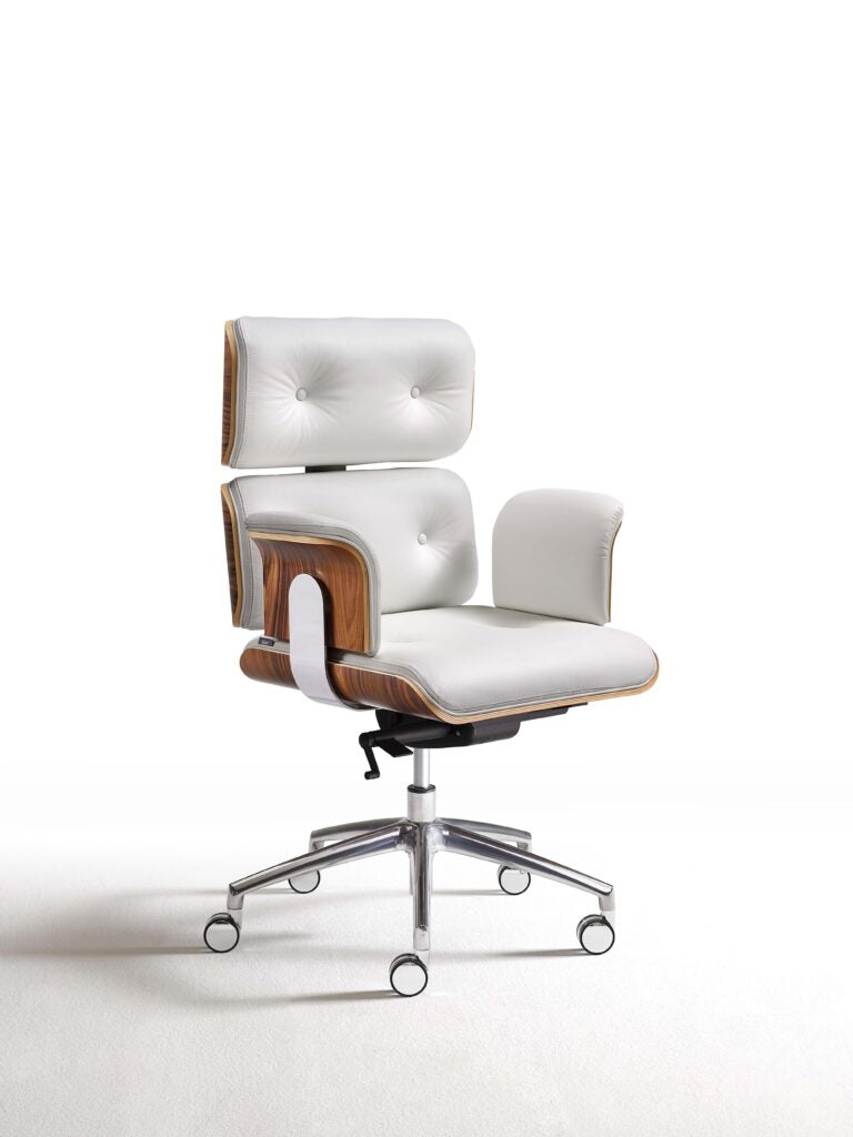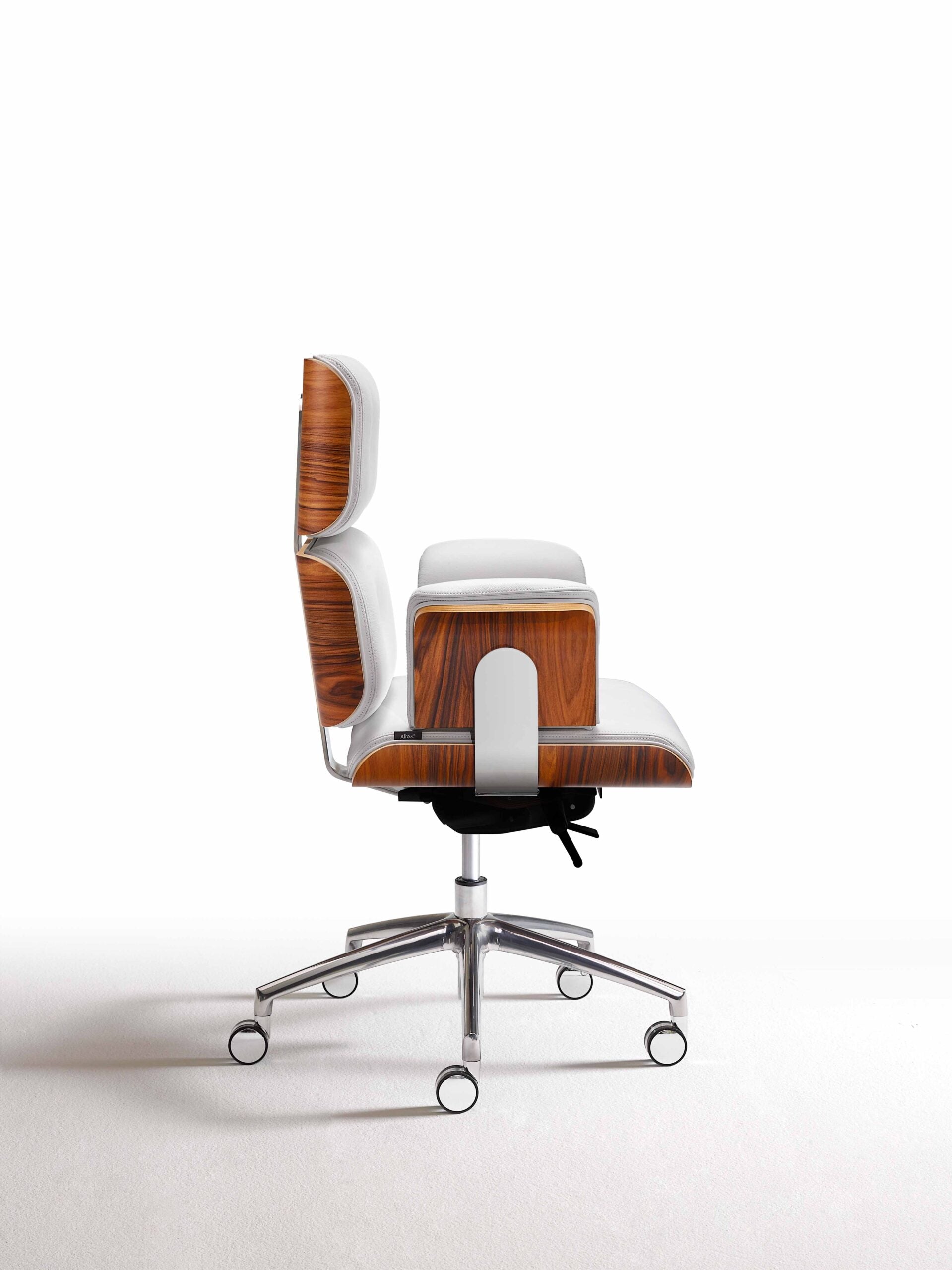 Wood, leather and a synchronic mechanism for adjusting tilt and height, offer the ultimate in comfort and design.